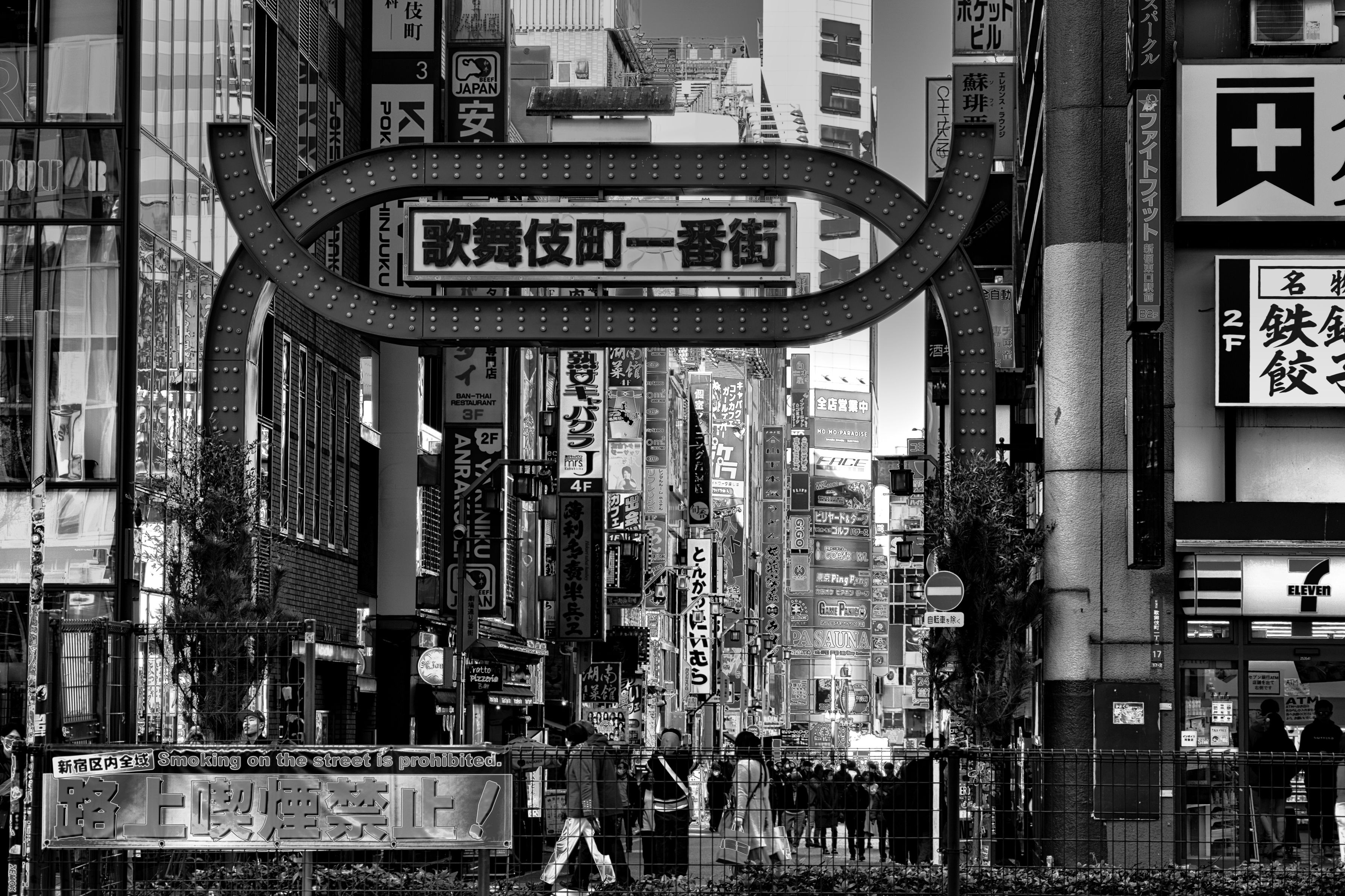海外の旅行者は必ず写真を撮っている場所 「歌舞伎町一番街アーチ」歌舞伎町の入り口で 人々を迎える街のシンボル 色々な人種・ビル・看板の文字・色・形で溢れています