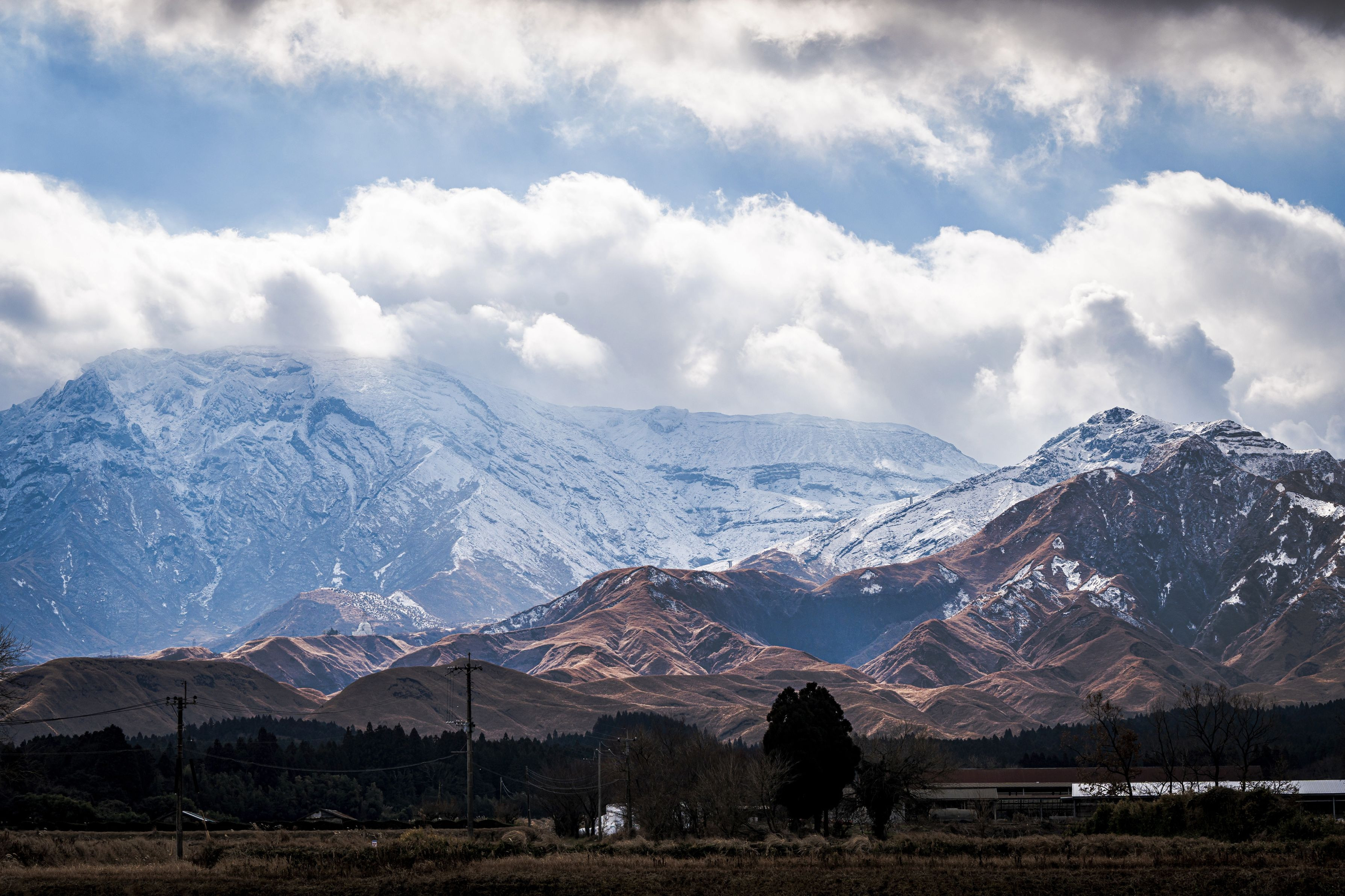 冬の阿蘇、目的地に向かう途中の農道からの景色が素敵だったので撮ってみました^ ^
