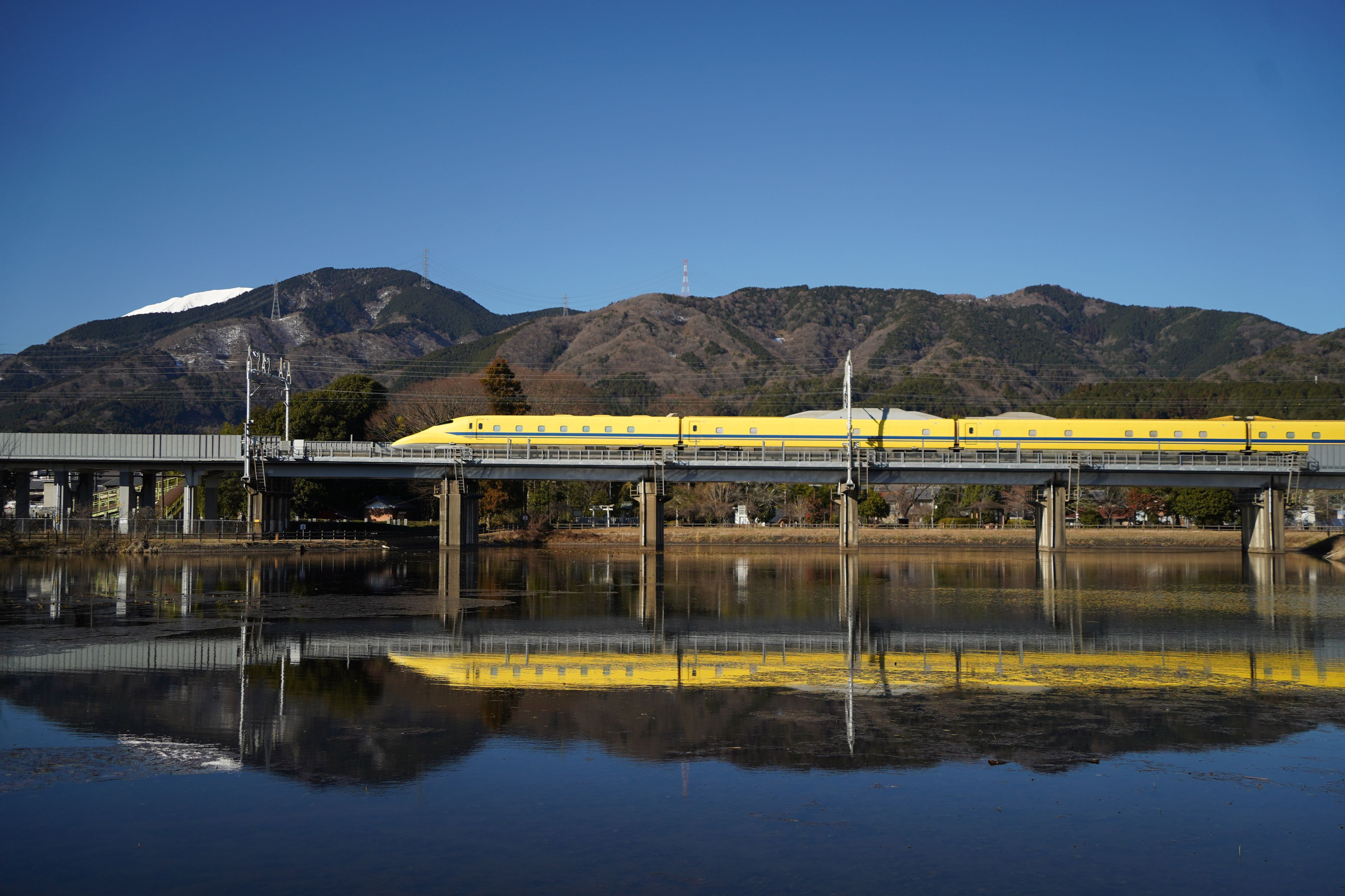 残り少ない時を惜しむようにT4編成のドクターイエローが走ります。こちらの方向でリフレクションが撮れるのは珍しいので、感謝です。