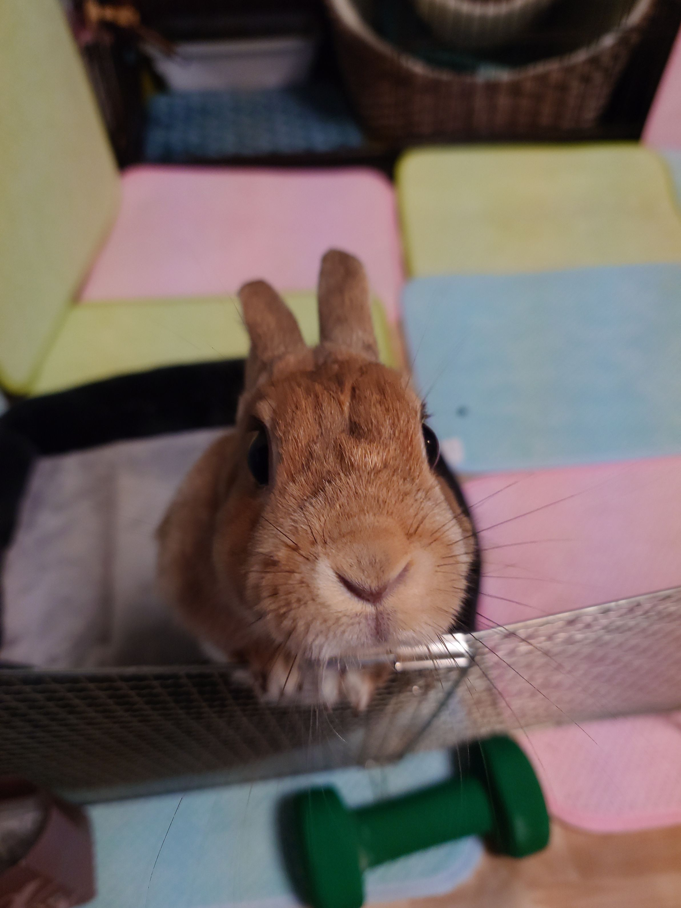 娘夫婦のうさぎさんです。女の子です。ゲージから出てきておやつが欲しいと背伸びしてアピールしています。りんごが大好きです。ことあと少しあげました。