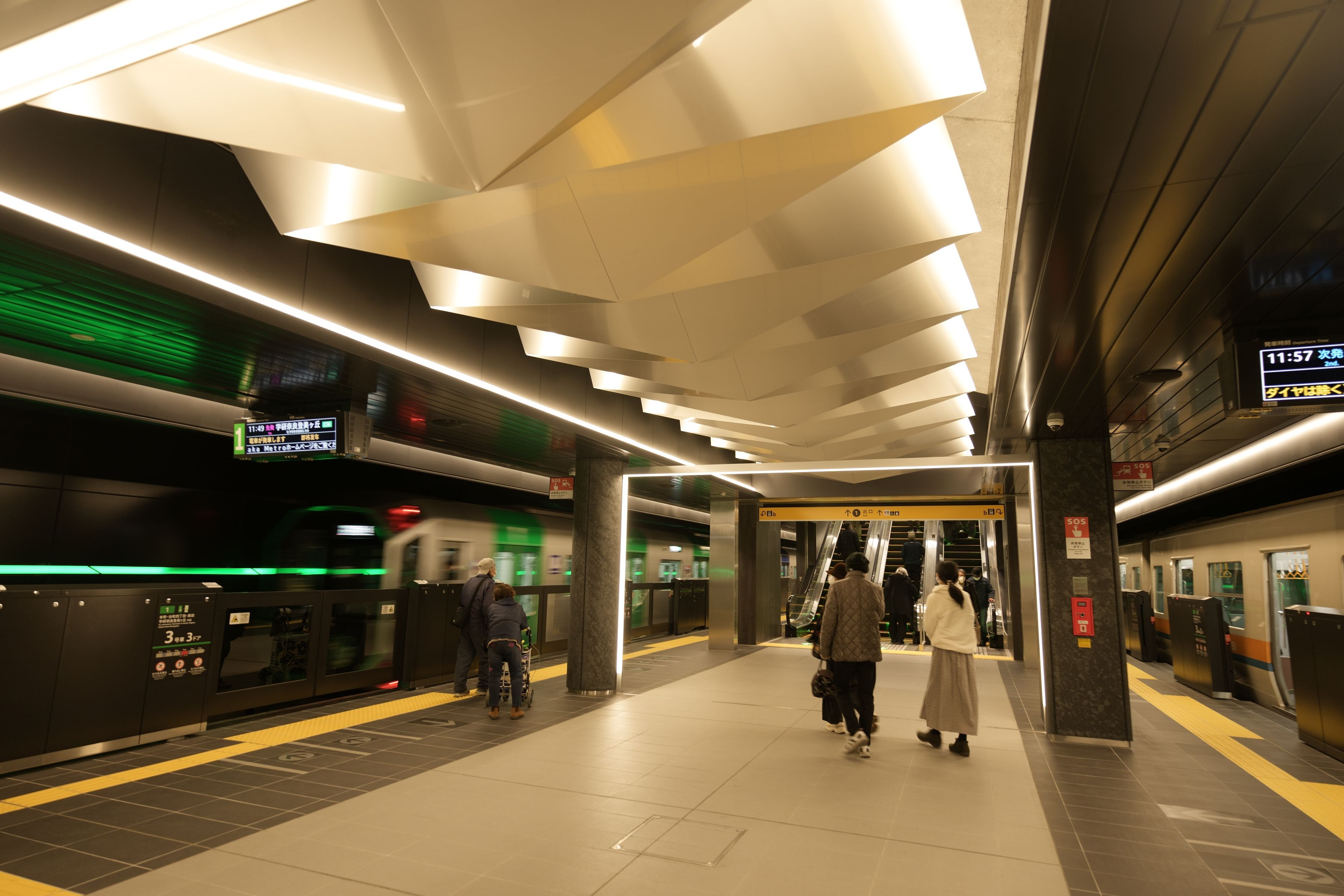 たくさんの来場者でも混雑しないように広く作られた駅は、すごく近未来的な感じがします。