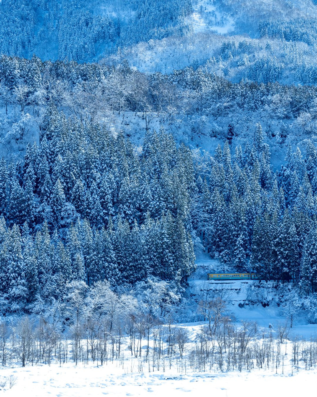 この雄大な雪景色の中を走る遠くからzoomレンズを使って撮影。大きく引き伸ばして見てみたい一枚!