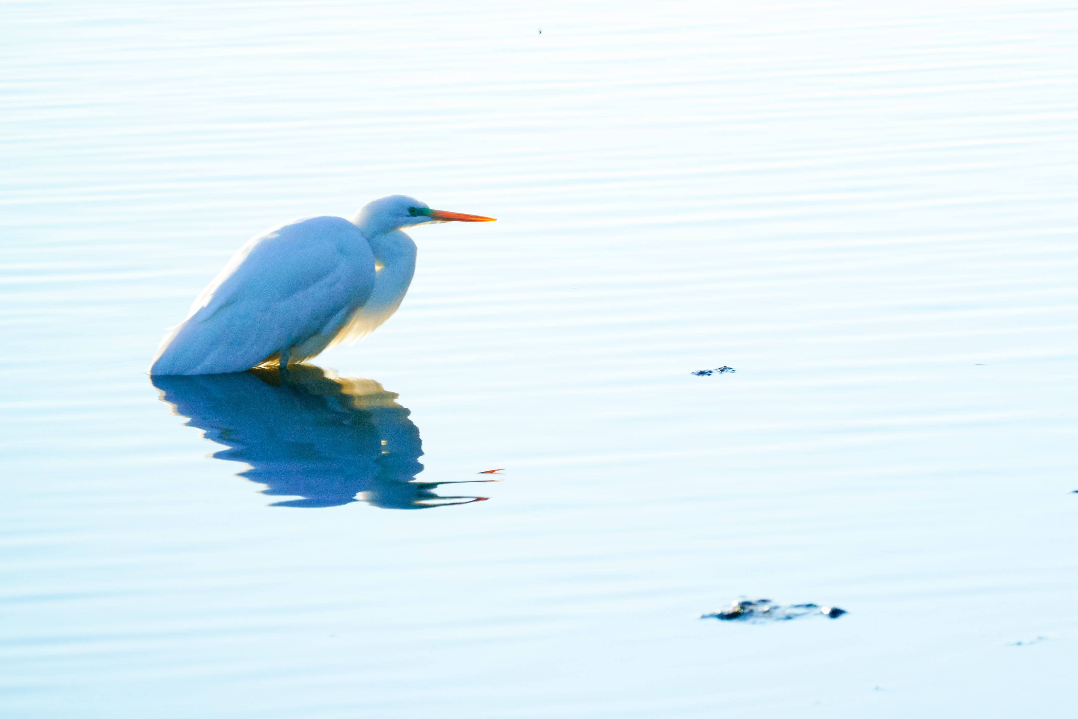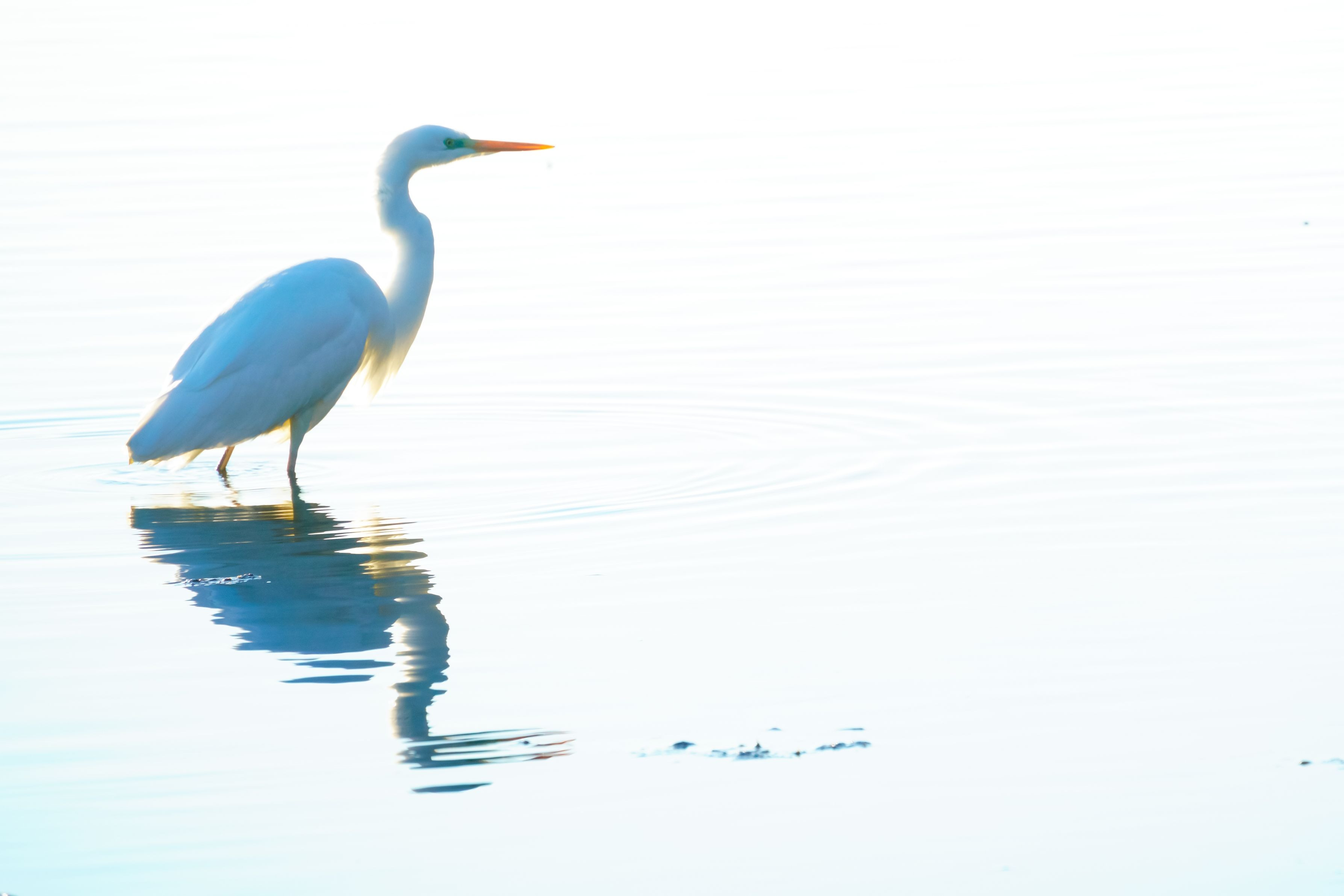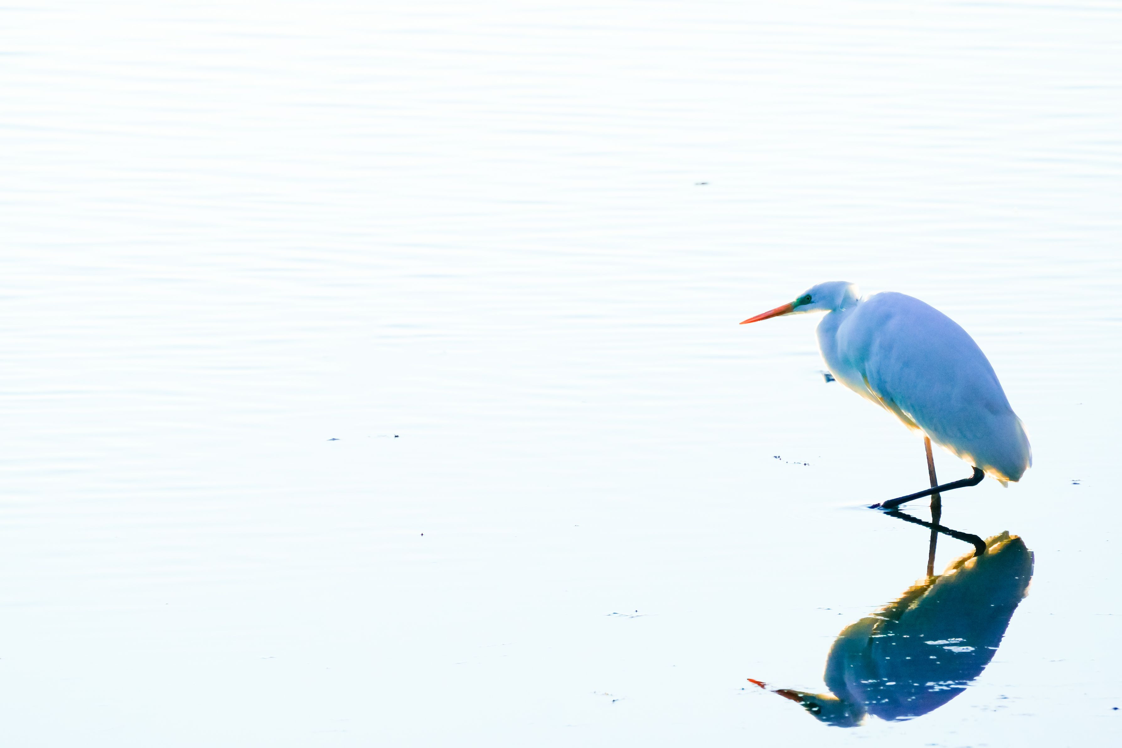 びわ湖のサギですが、ハイキーで水面の波等を消してサギだけ立体感に撮影しました。