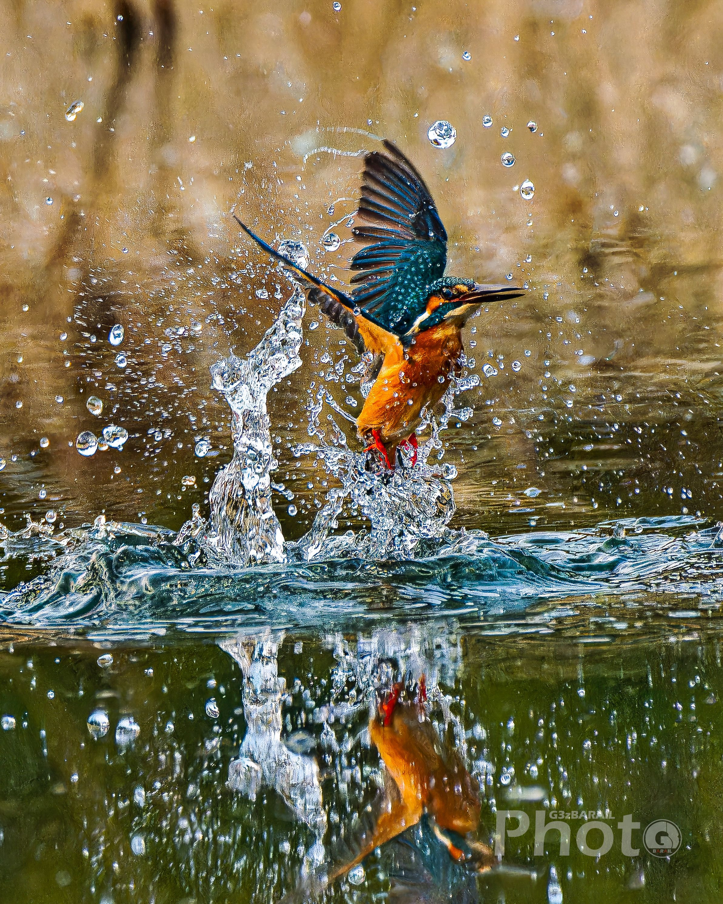 飛沫をあげ、水から上がるカワセミくんの勇姿 運良く、こっちに向かって飛んでくれました。