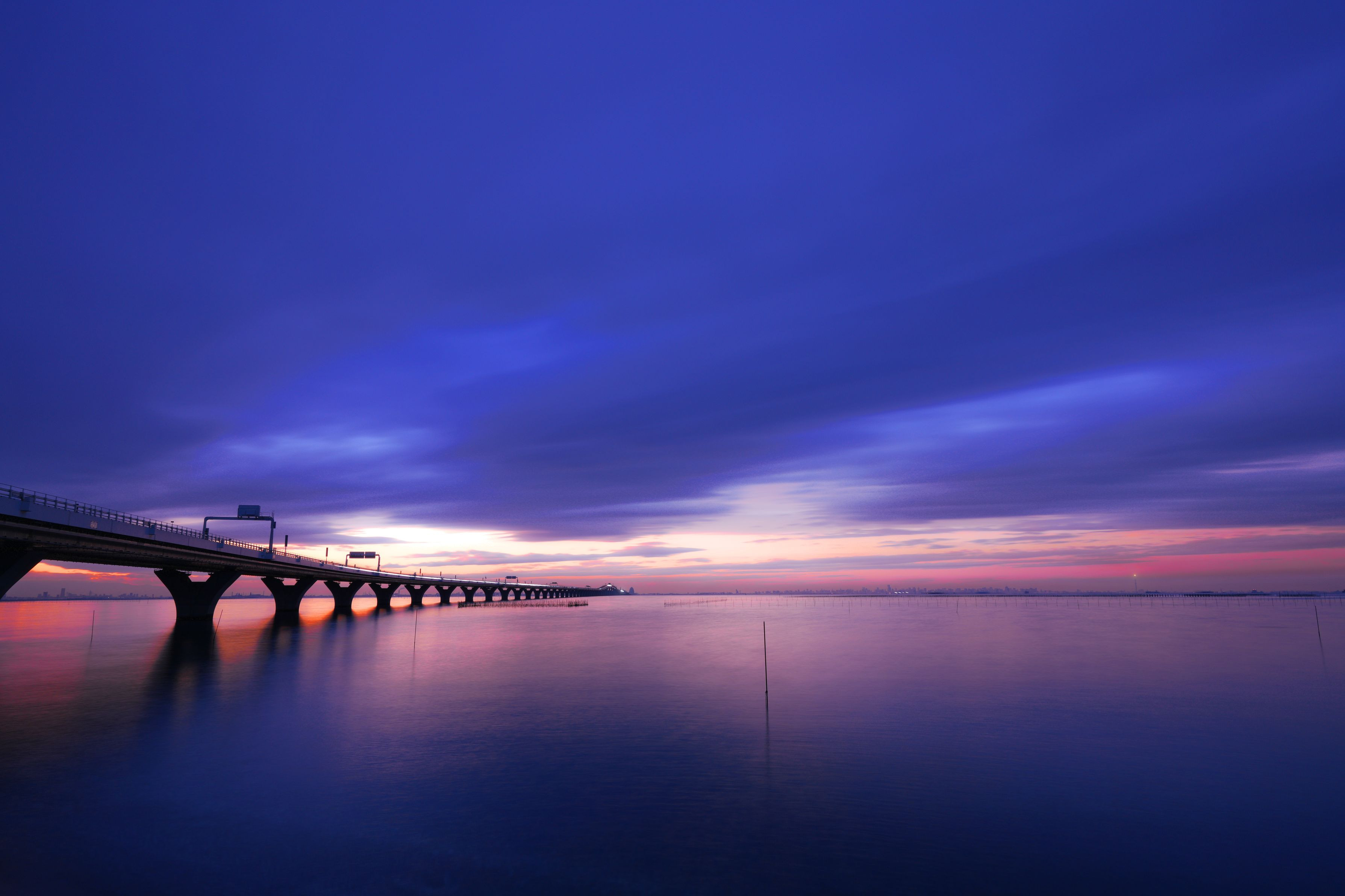 東京湾の夕暮れ 東京スカイツリーの灯り