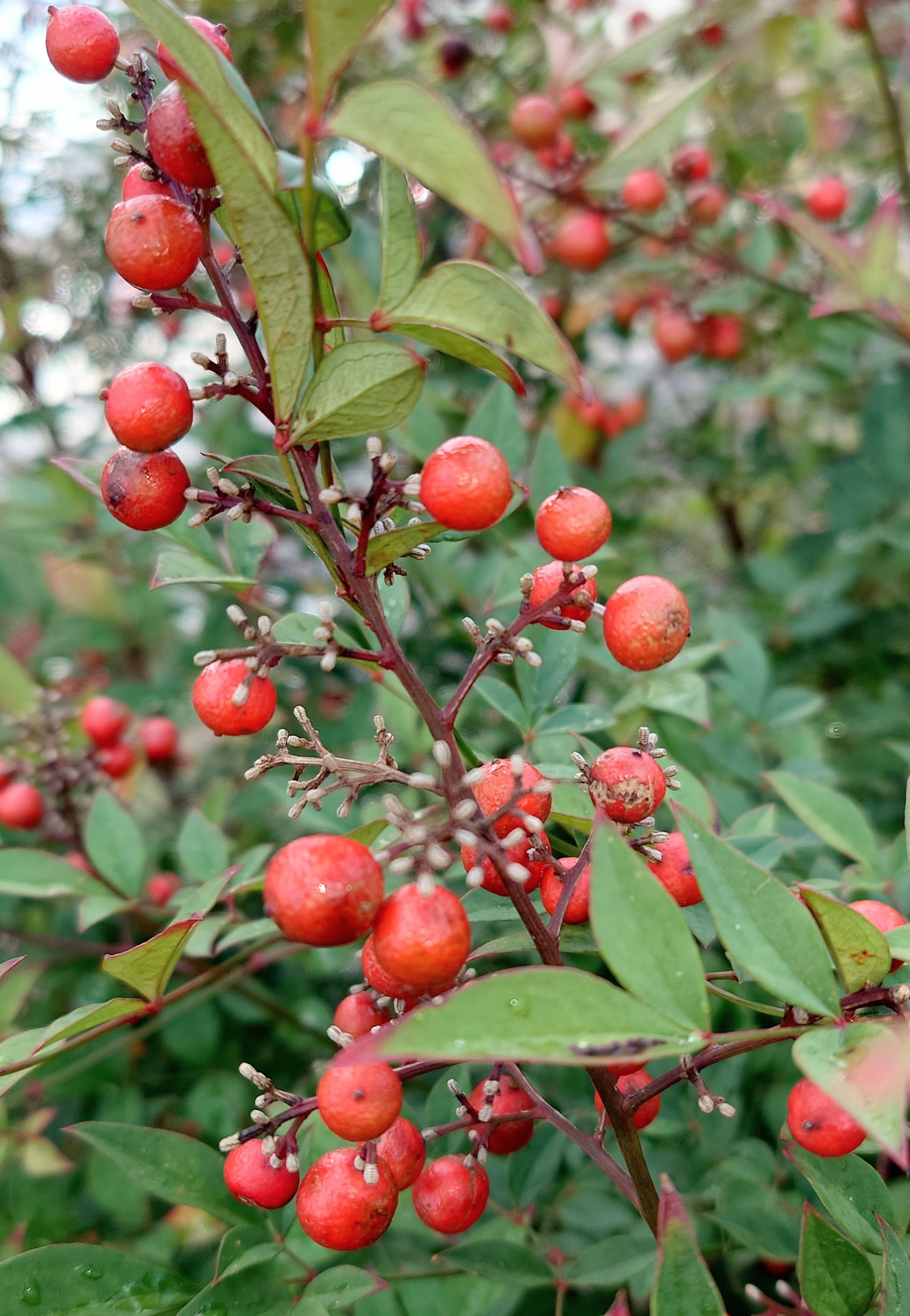 赤い実が印象的な南天の実です。