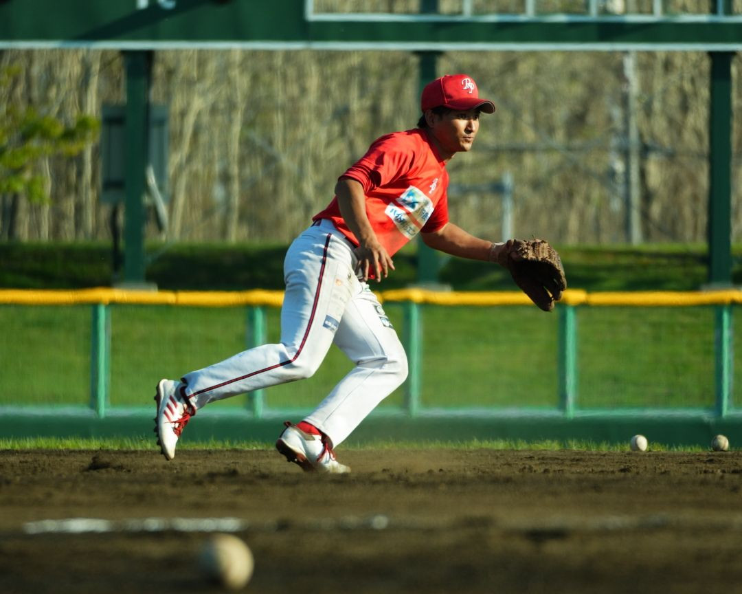 石狩レッドフェニックス 青葉公園野球場での守備練習の一コマ。 芹澤選手