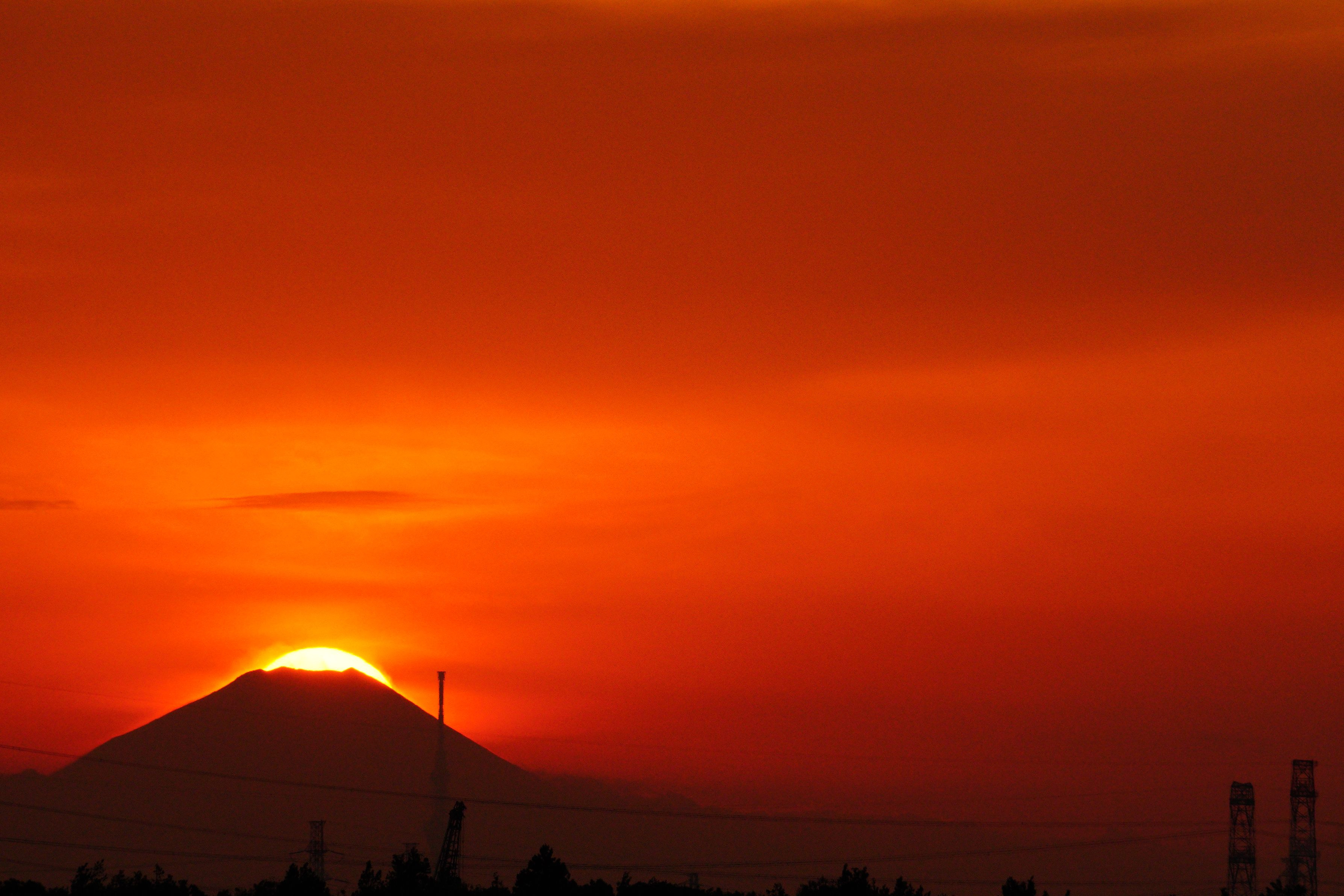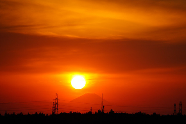 今日は天気が悪く富士山が眺められませんでしたが16:00頃から薄く姿を現わしてくれました、画像を見ても薄い富士山でしたが「富士のテッペン」に近ずくとシルエットで現れ見事な落日陽となりました、我が家が引っ越しして15年で5回目の眺めでありました。