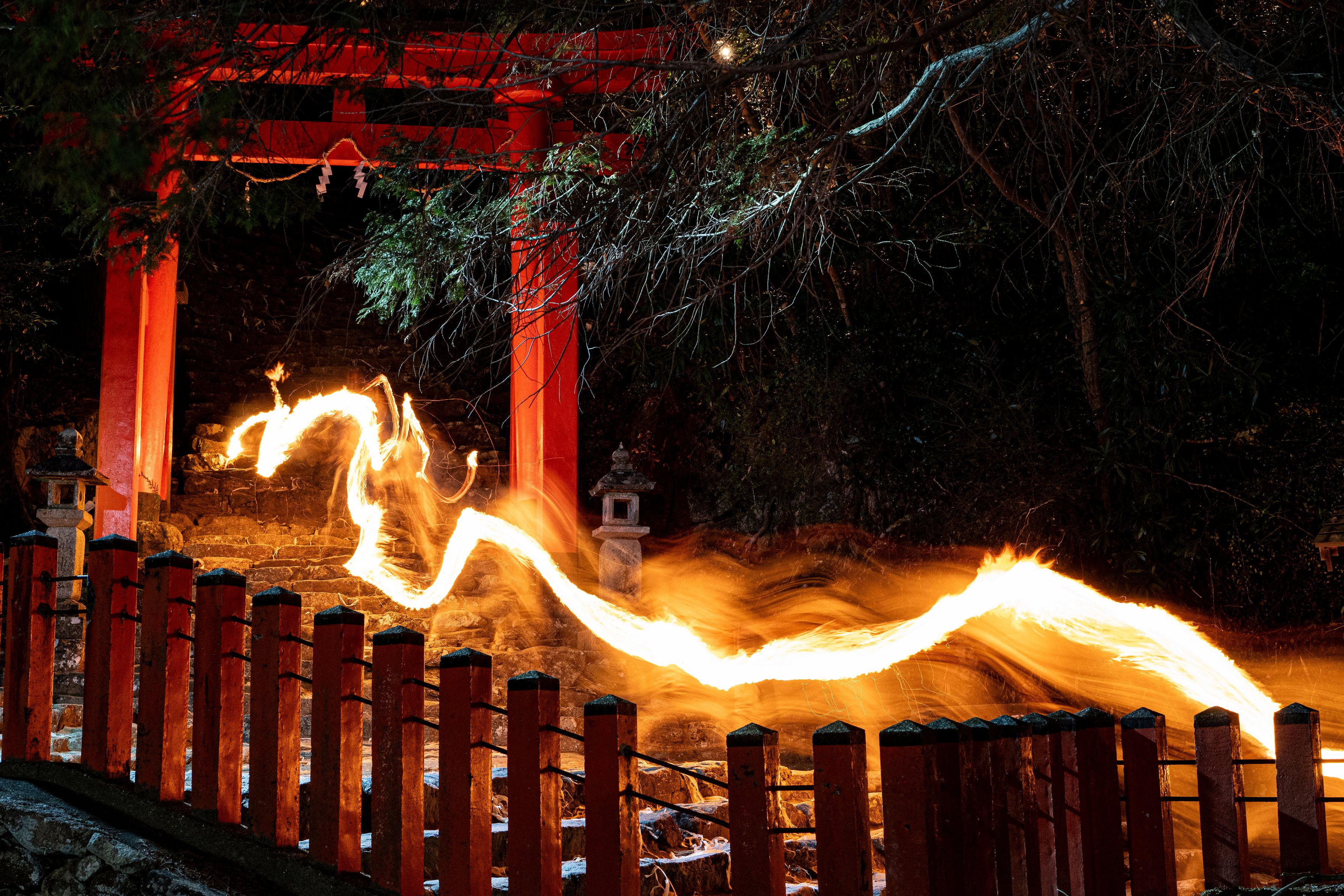 和歌山県新宮市神倉神社のお燈まつりで一番に降りてきました。