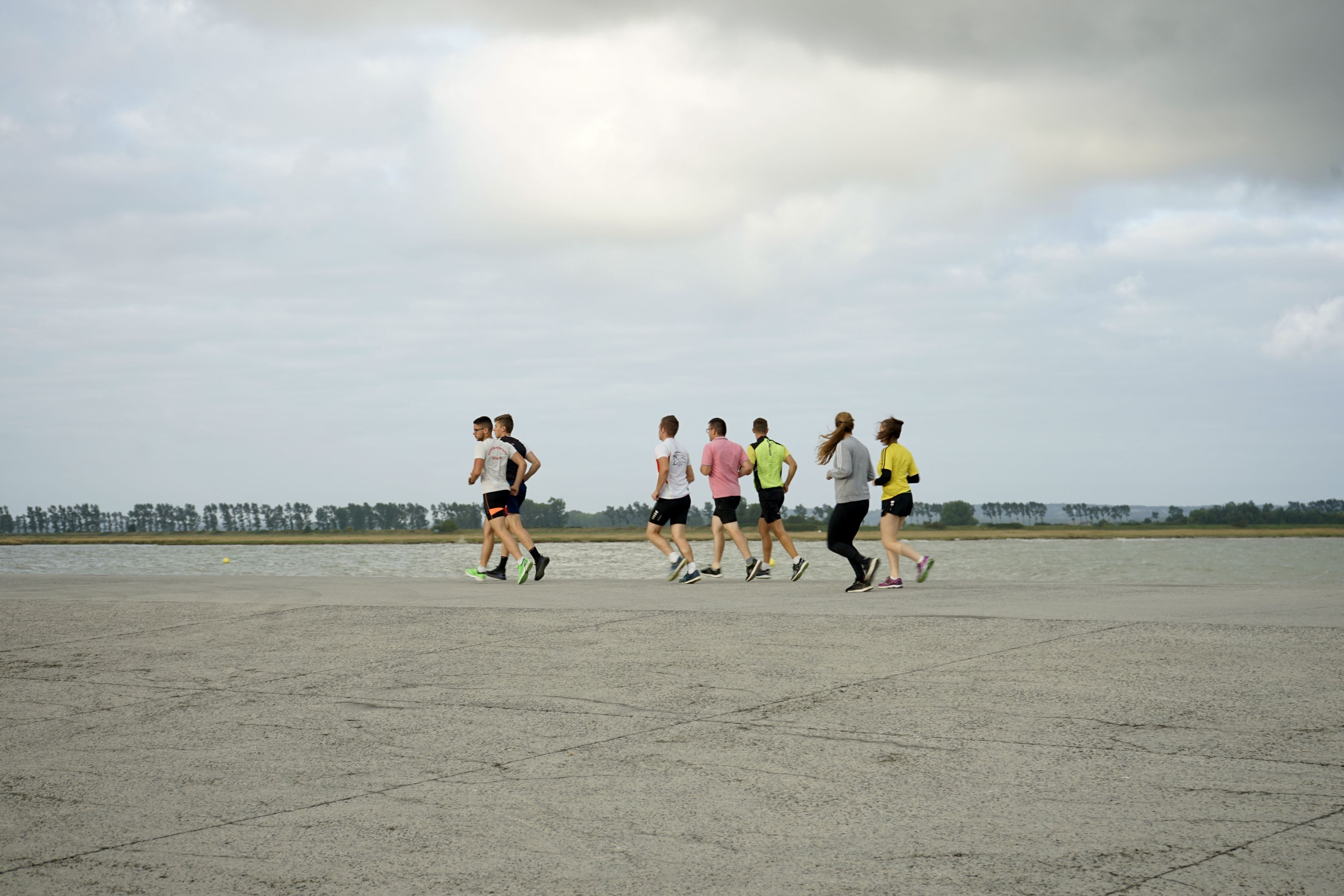 干潮のサン・マロ湾を走る人々