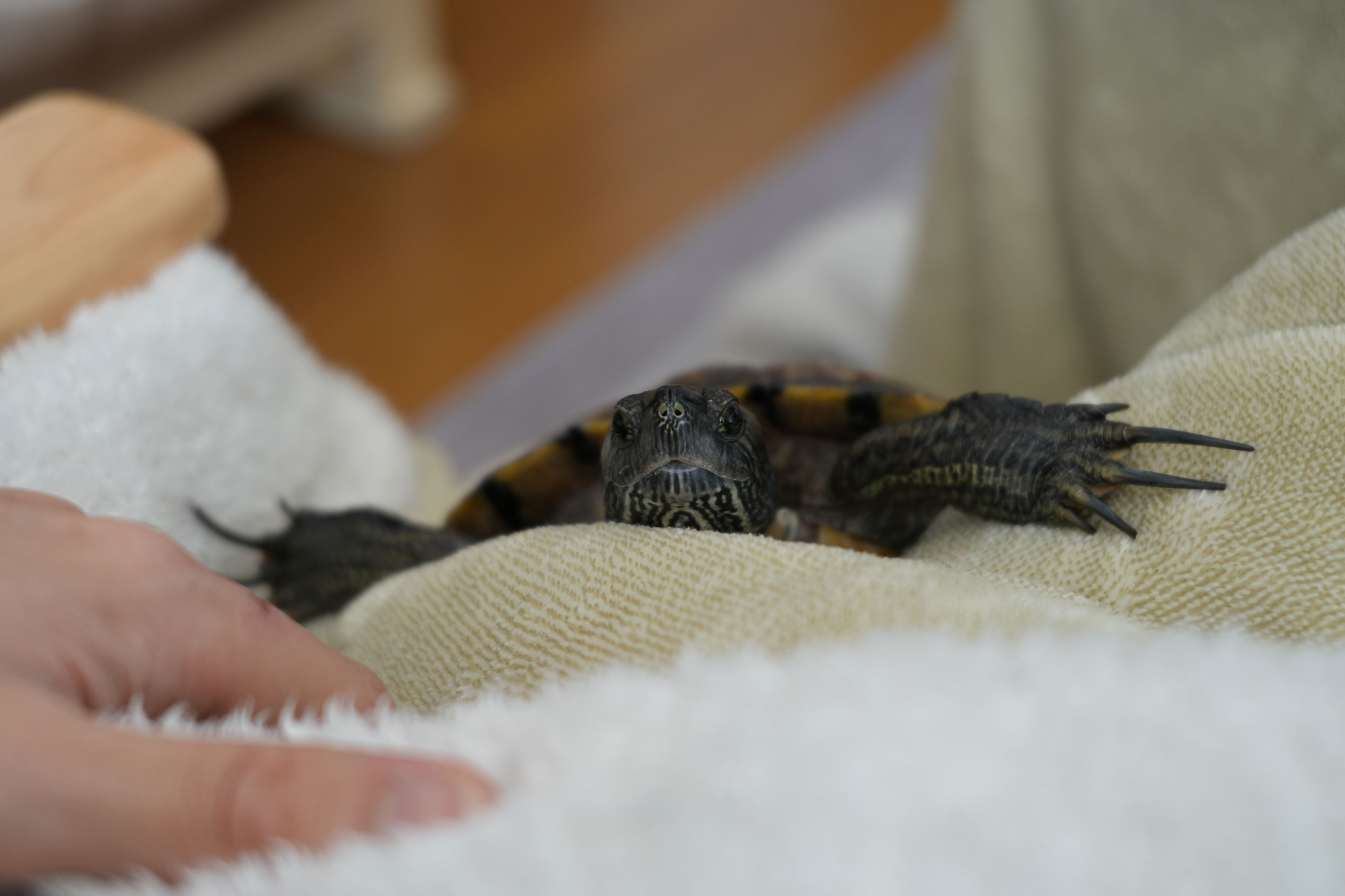 こたつで寛いでいると、布団をよじ登って奴がやって来る。 抱っこをせがむ、うちのかめが。 それが我が家の、冬の日常。 #アカミミガメ #ミドリガメ #亀 #生きもの_ペット#