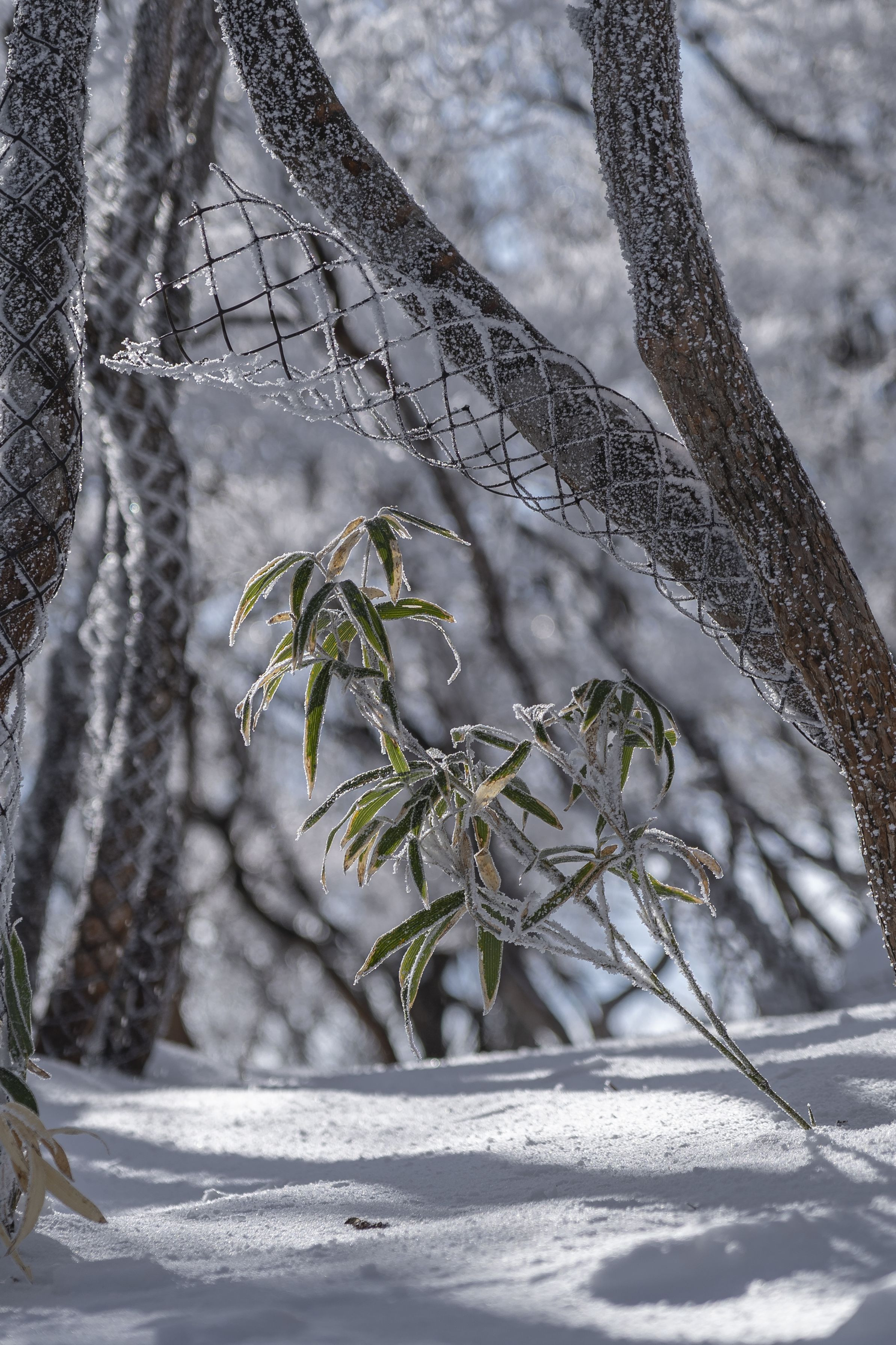 御在所岳で 笹が木と同じように傾いていたので思わずシャッターを