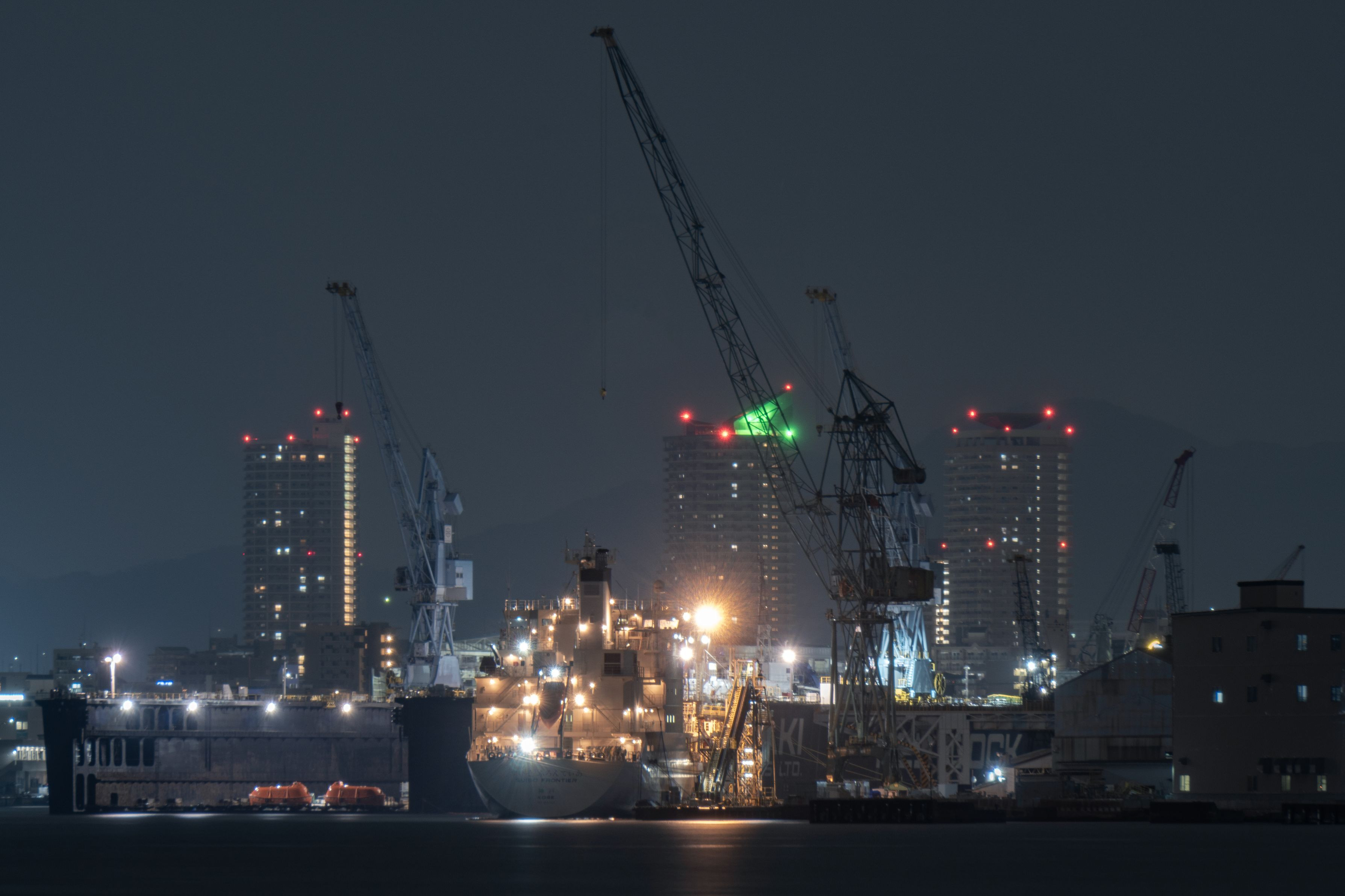 世界初の液体水素の運搬船を対岸から撮影してみました。