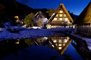 白川郷ライトアップ観賞ツアーに参加しました。定番の明善寺のリフレクションを撮影しました。残念だったのは屋根の雪が落ちてしまっていた事と田んぼの水量が少なく綺麗なリフレクションが撮れませんでした。