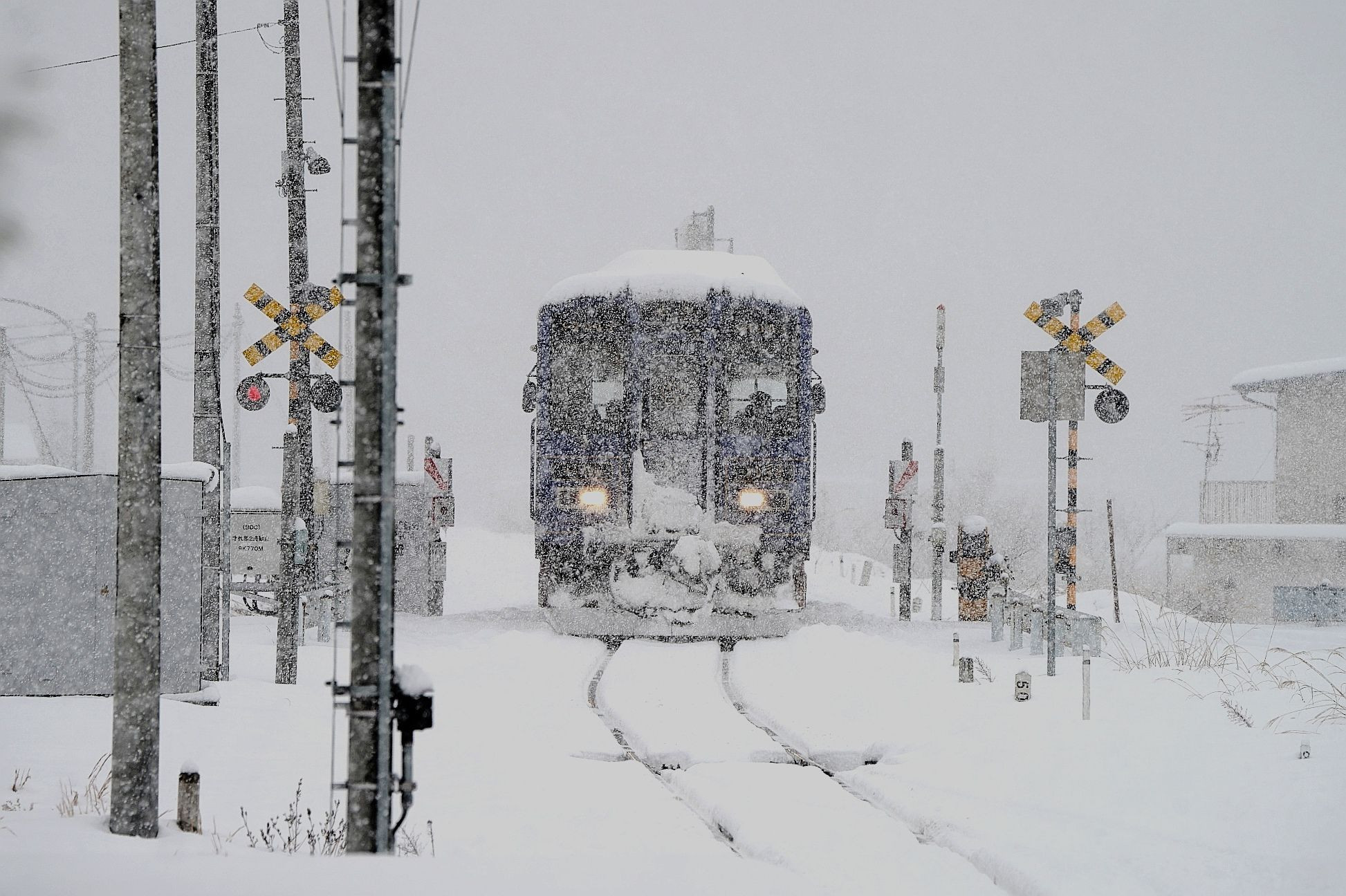 若桜鉄道の八東駅に入る昭和号 これからさらに雪深い若桜駅方面へ向かいます。 積雪25センチ、気温マイナス2℃