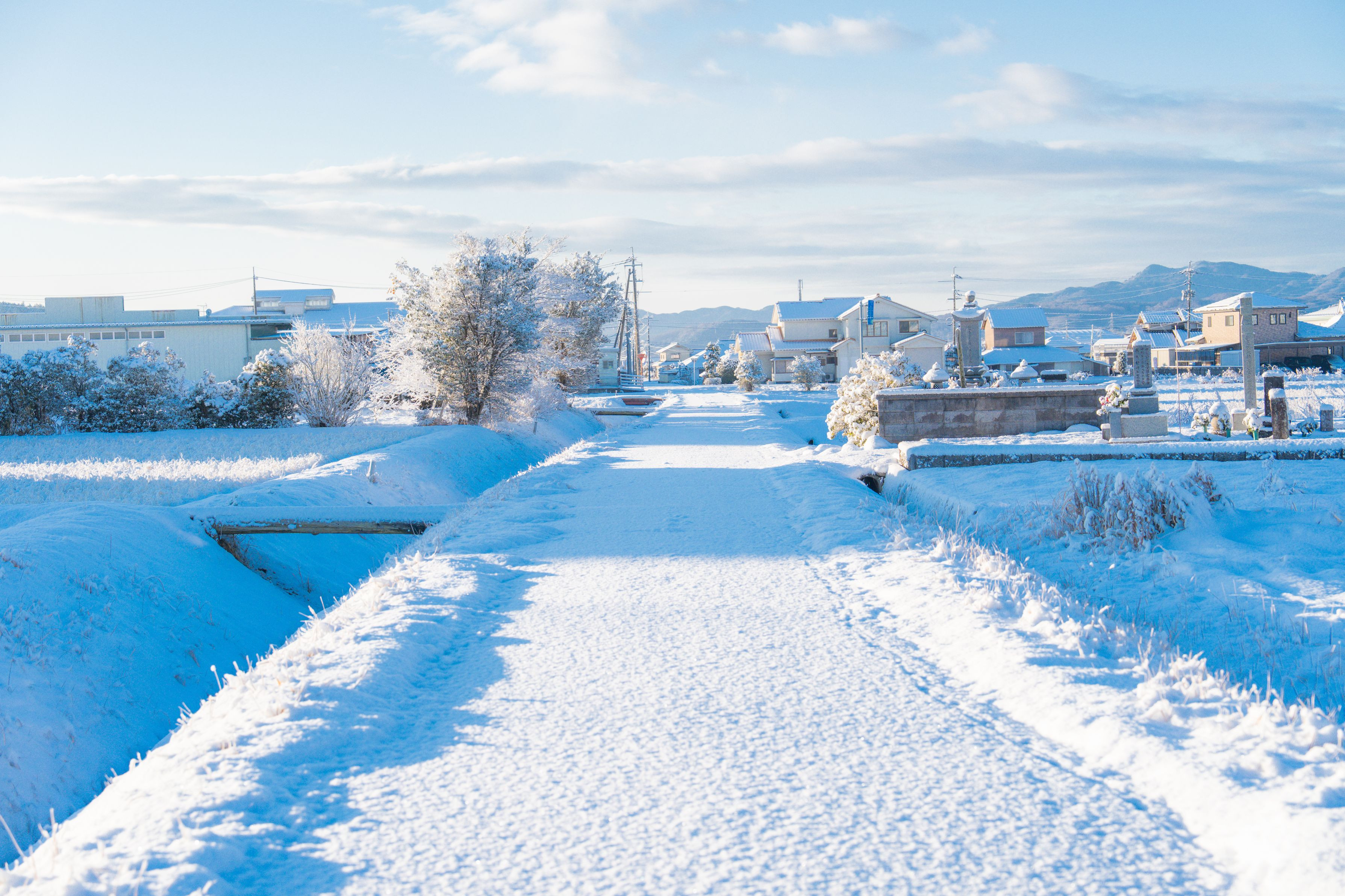 早朝、外に出ると雪景色でした