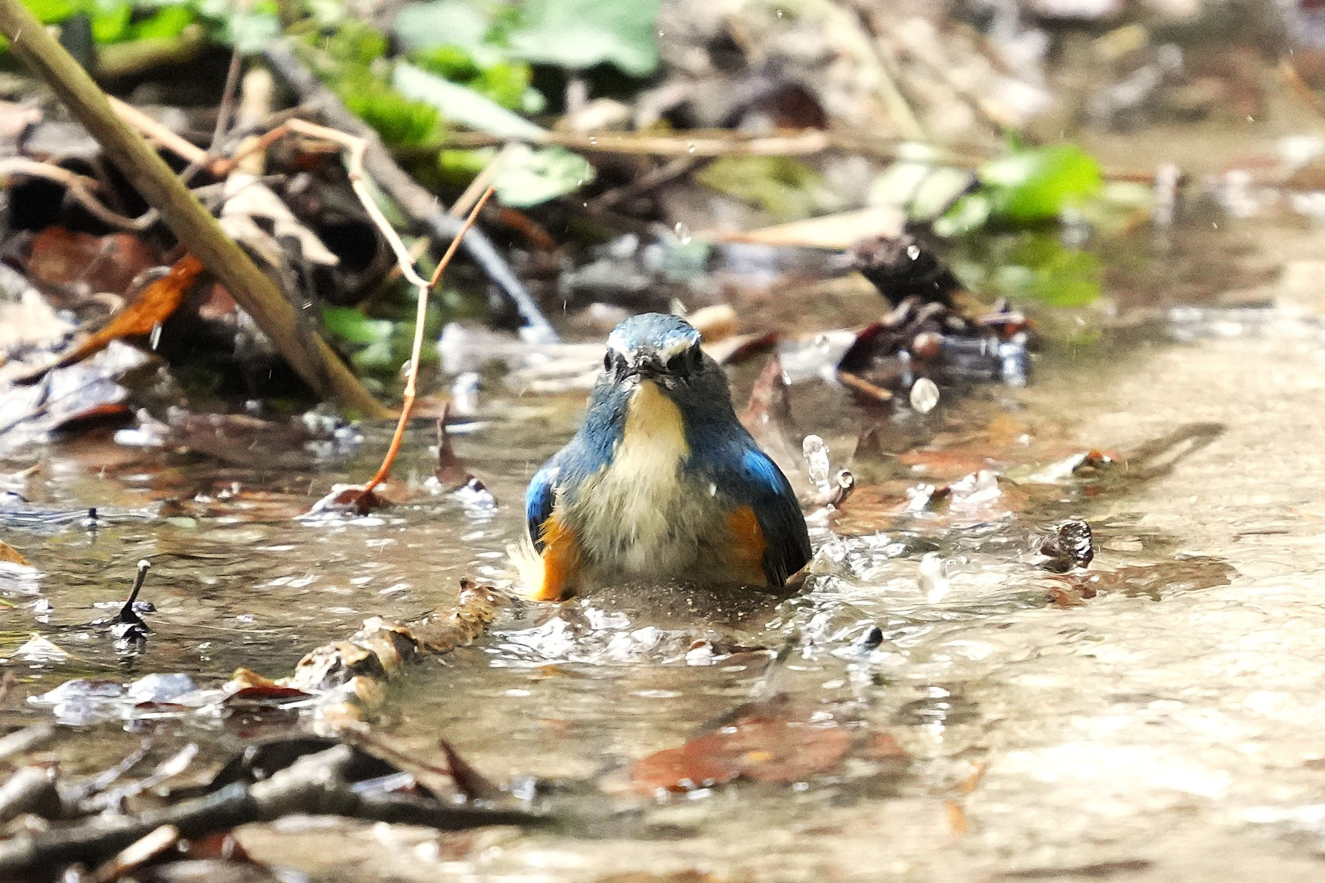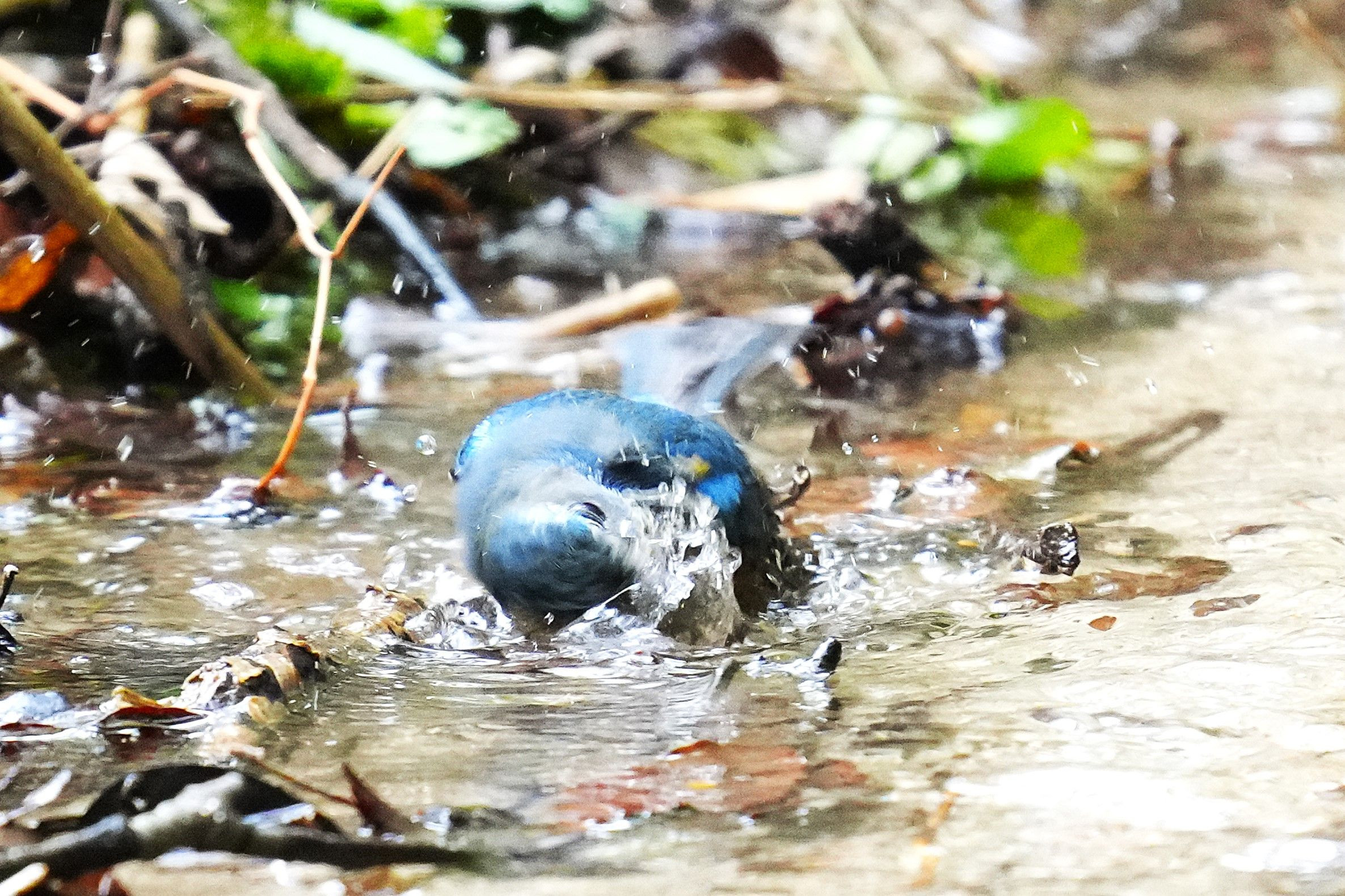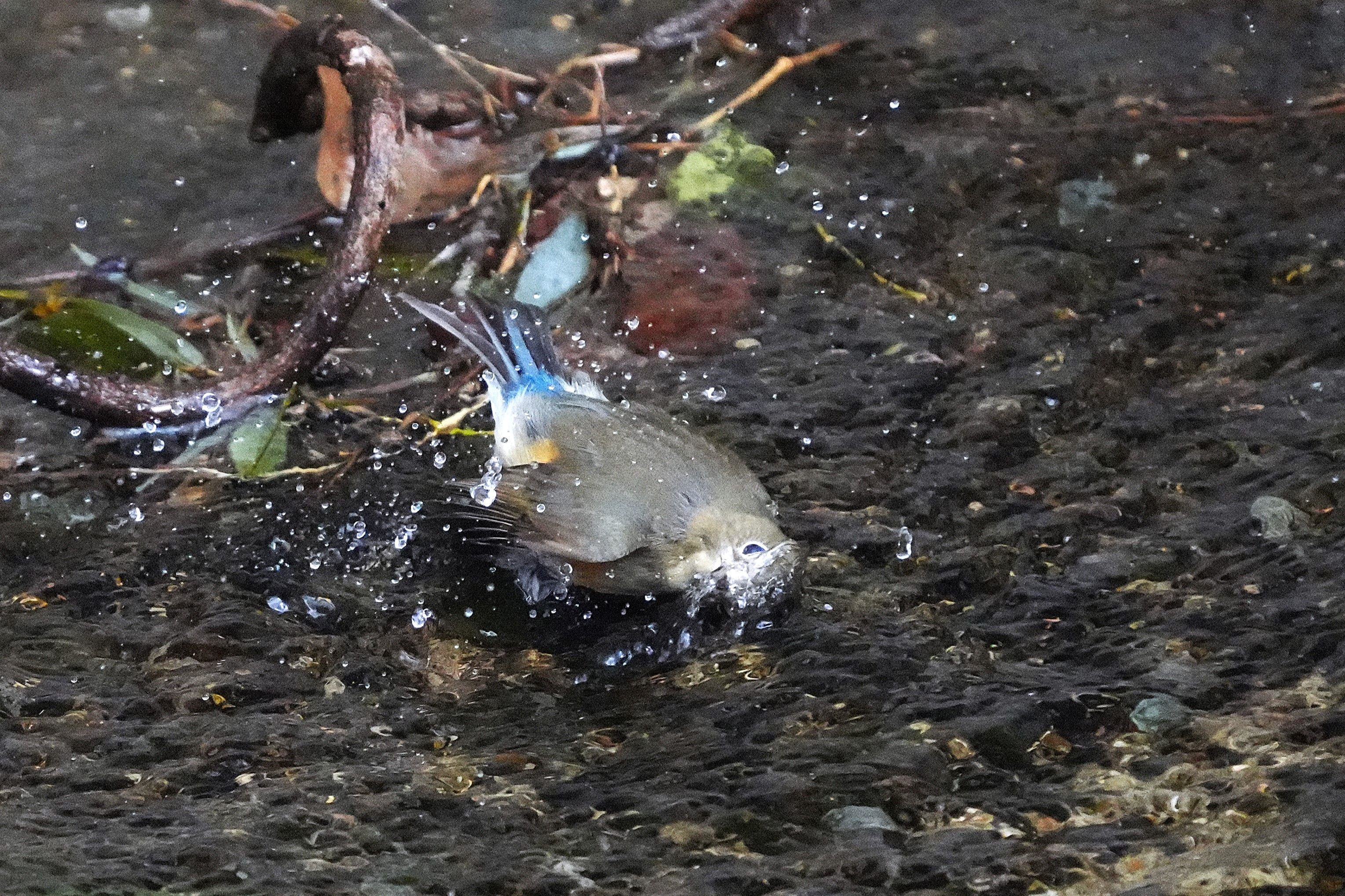この日は別々の場所でルリビタキが♂・♀ともに 水浴びしていました。
