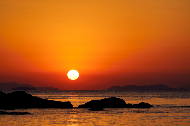 瀬戸内夕景(島々の間に沈む夕陽)