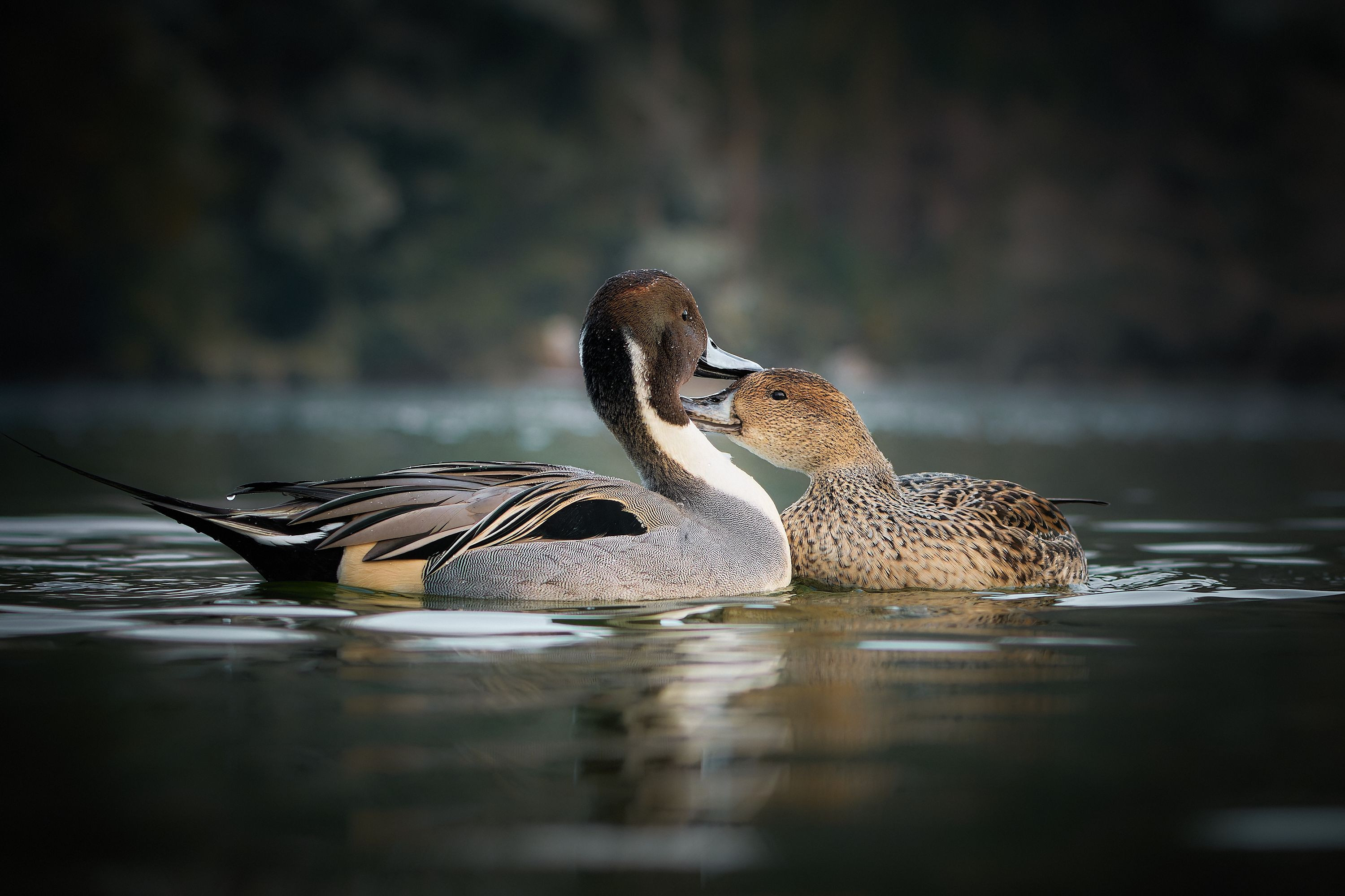 誰にも邪魔されない、ふたりだけの時間。静かに寄り添い、心が重なり合う瞬間。まるで二人だけのメロディーが優しく響き渡り、このひとときが永遠に続いてほしいと願う。 #オナガガモ#