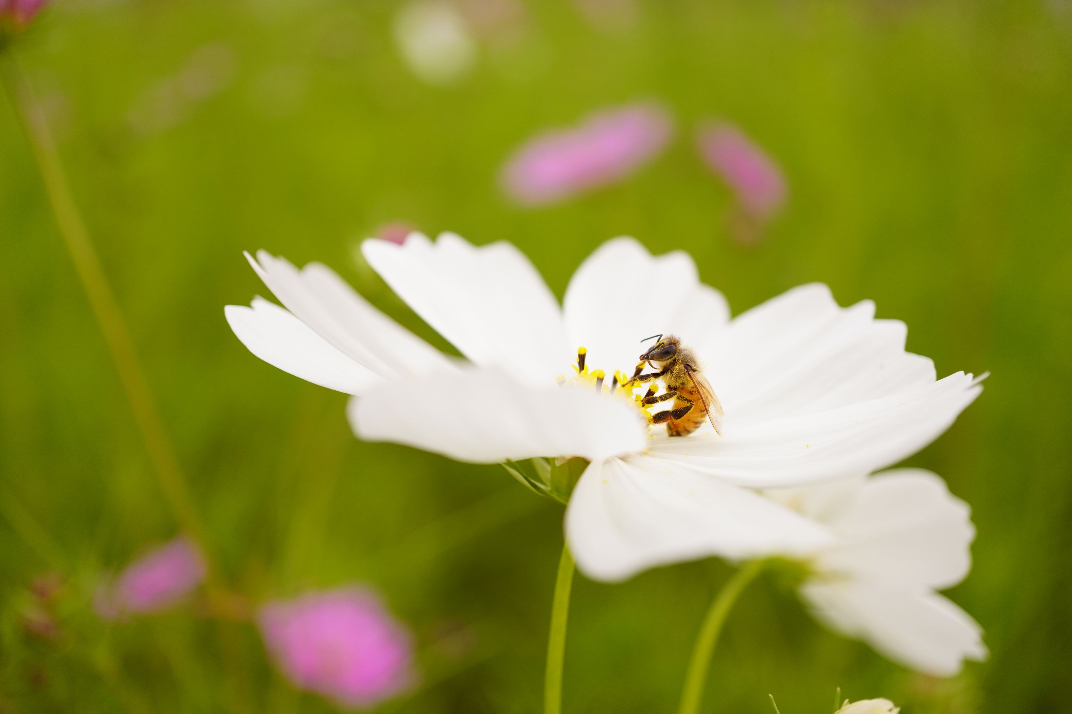 まるでお花のなかから生まれてきたのかな?と思うほど、 ちっちゃくてかわいらしいおひめさま🐝が コスモス畑におりました。 #生きもの_一般#