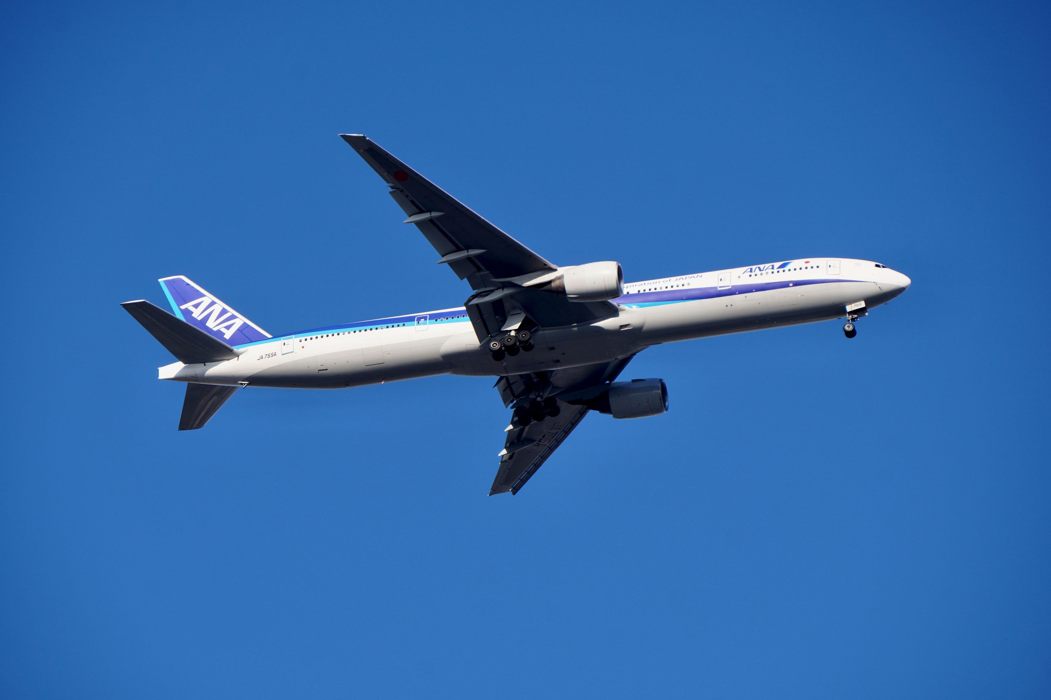 真冬には珍しく南風で着陸する777です この機体そろそろ退役とのこと