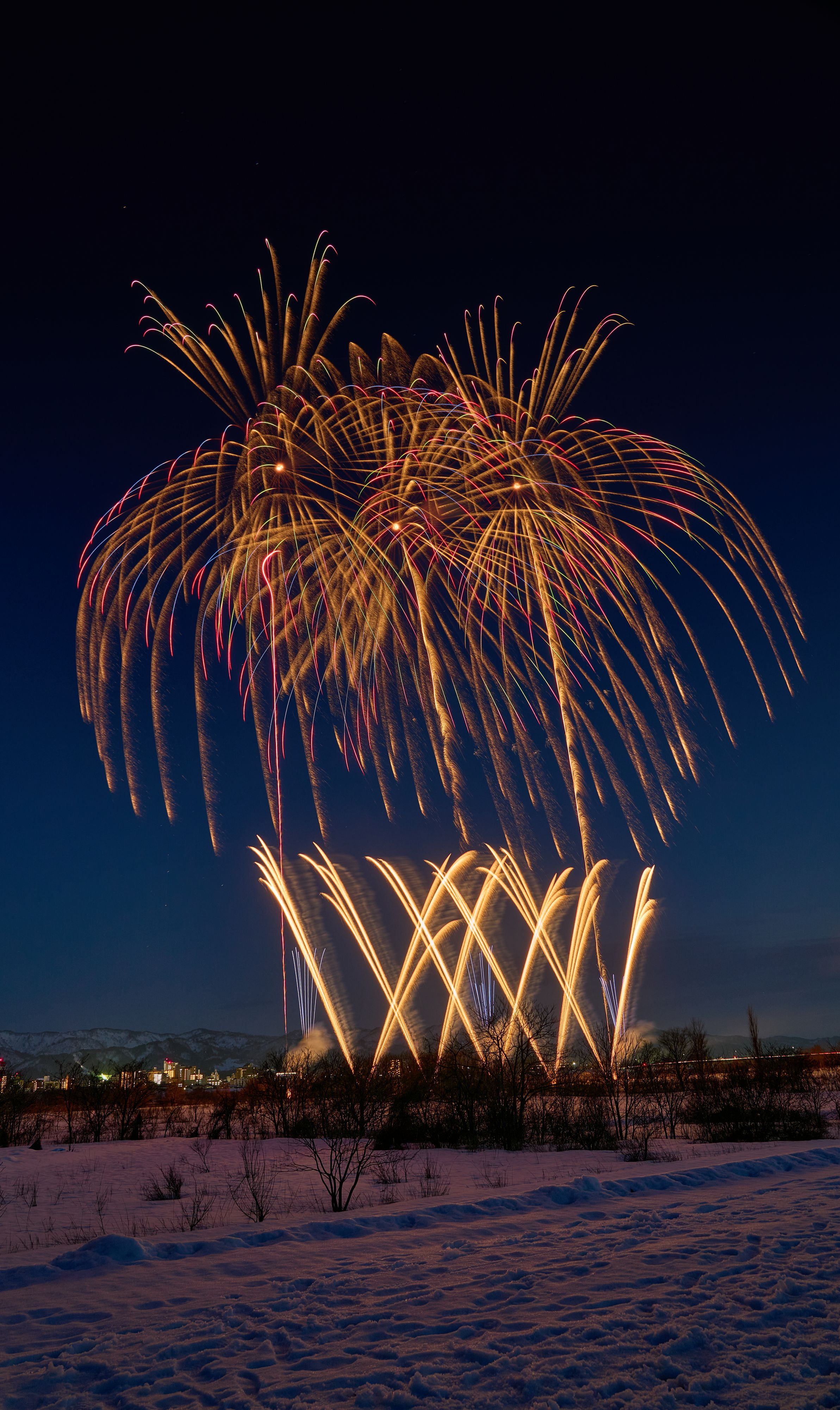 フェニックスみたいな花火🎆❄️ 雪しか祭りで打ち上げられた 雪花火⛄ 雪しか祭り2025 第40回長岡雪しか祭り 2025.2.15〜2.16 新潟県長岡市