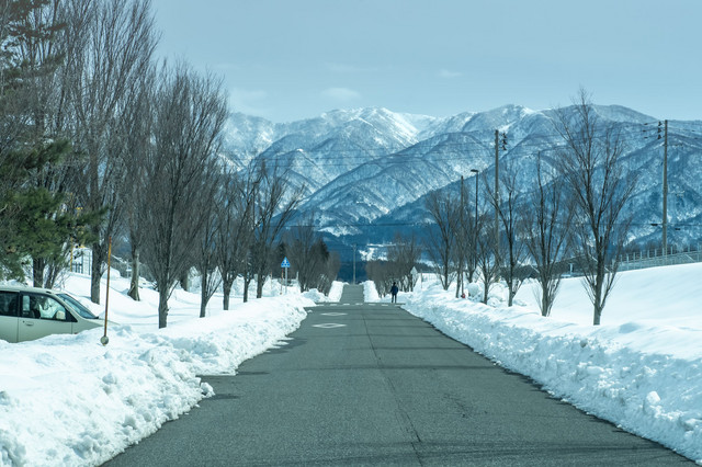 朝日を浴びるメタセコイア