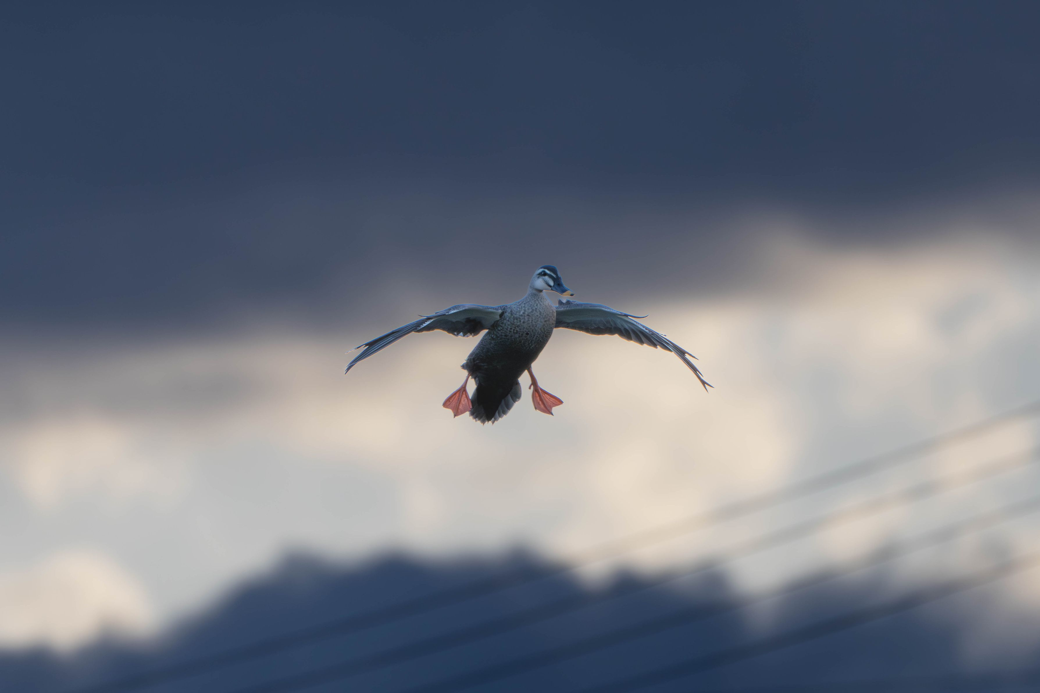 α7RV SE100400GM カルガモが舞い降りる際、大の字で抵抗を受ける姿が愛らしい。