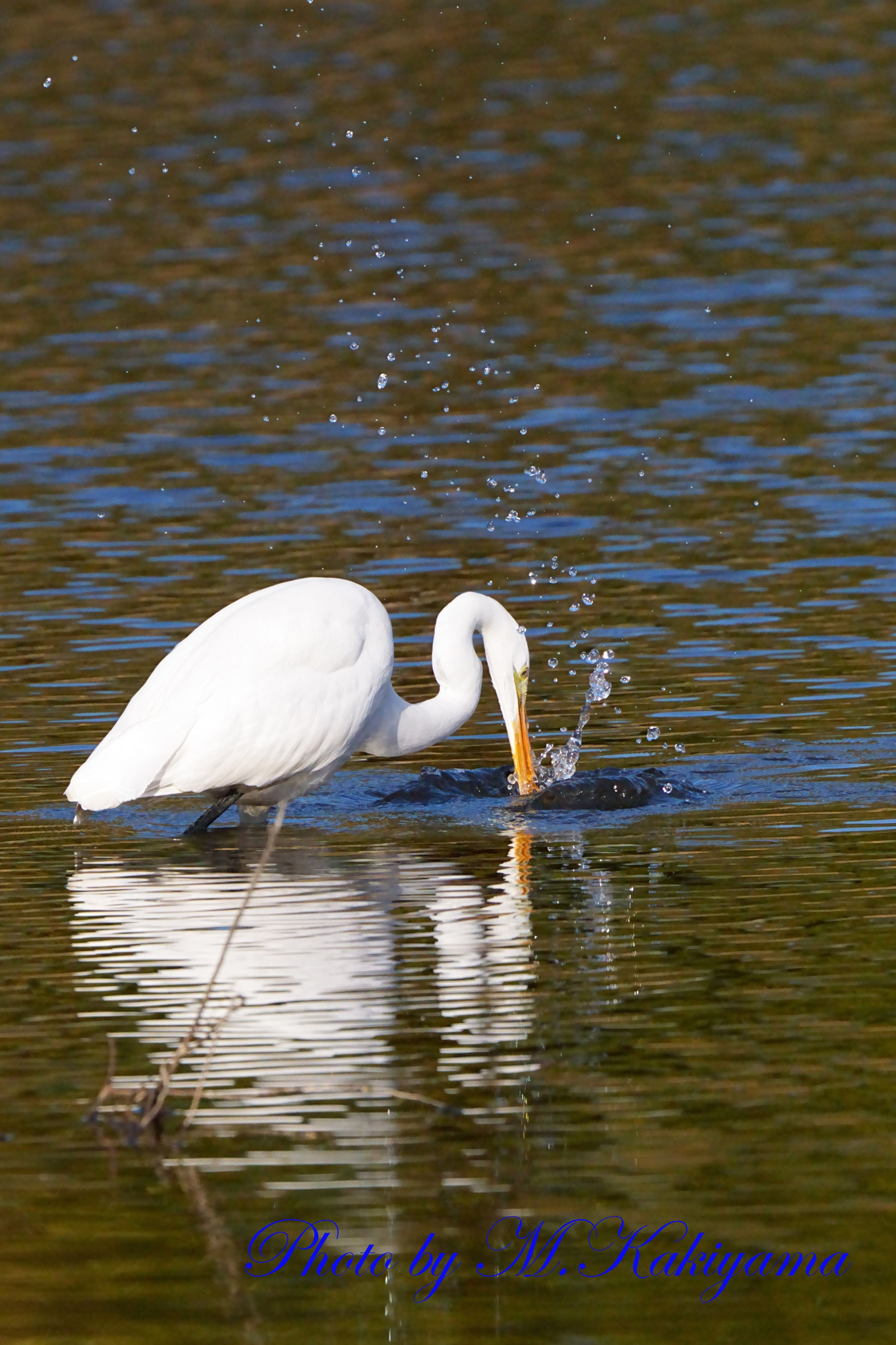 ダイサギの餌を捕獲する瞬間ですが、今回は失敗したようです。