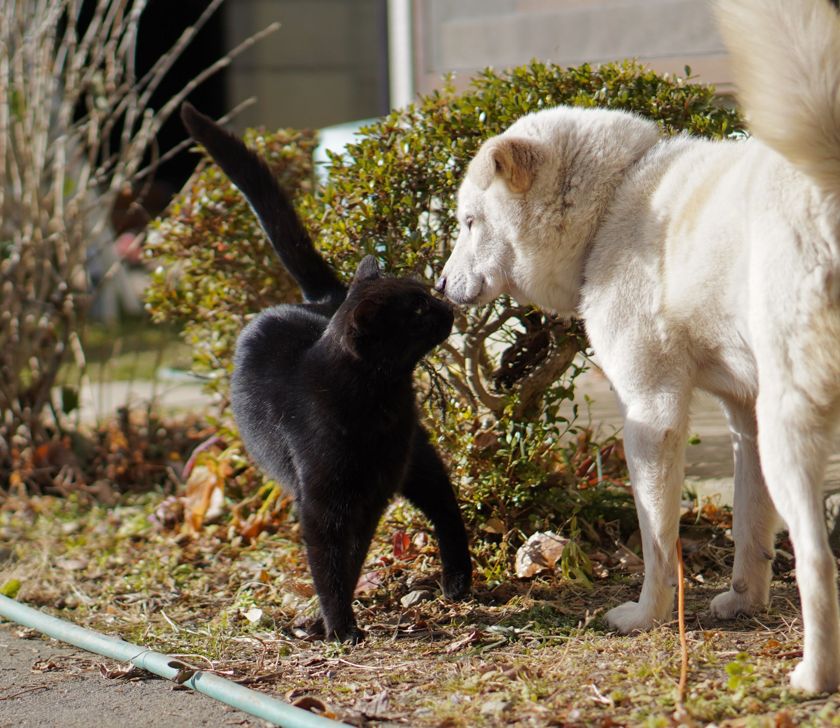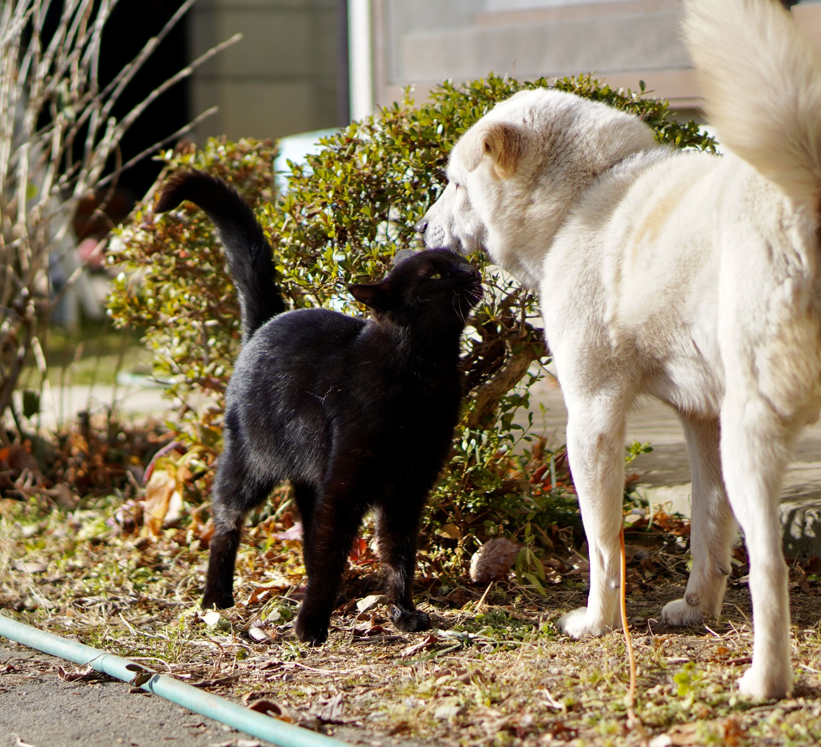 犬のジャッキーは、どのニャンコとも仲良し(*^^*) 優しくツンっ♡なスキンシップを見ていて、癒されました。