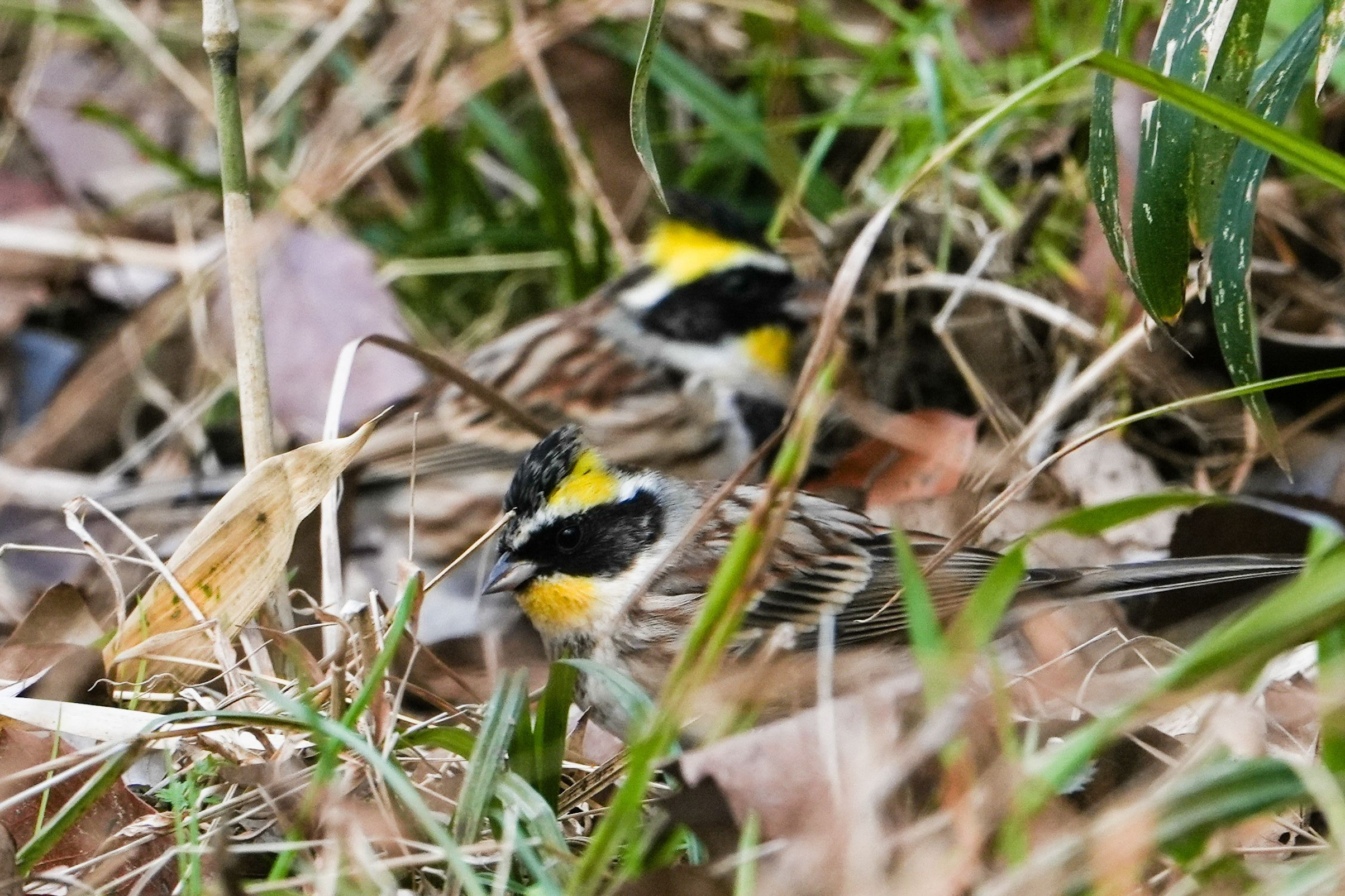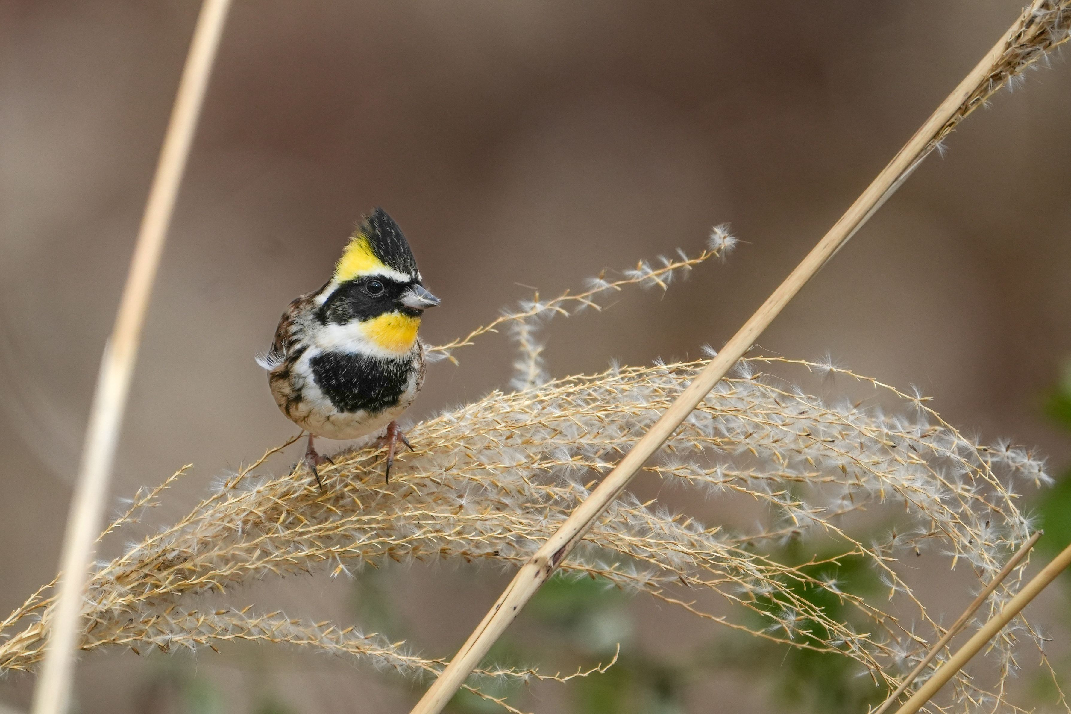 地面で見つけたミヤマホオジロ! ススキに移動してくれました!