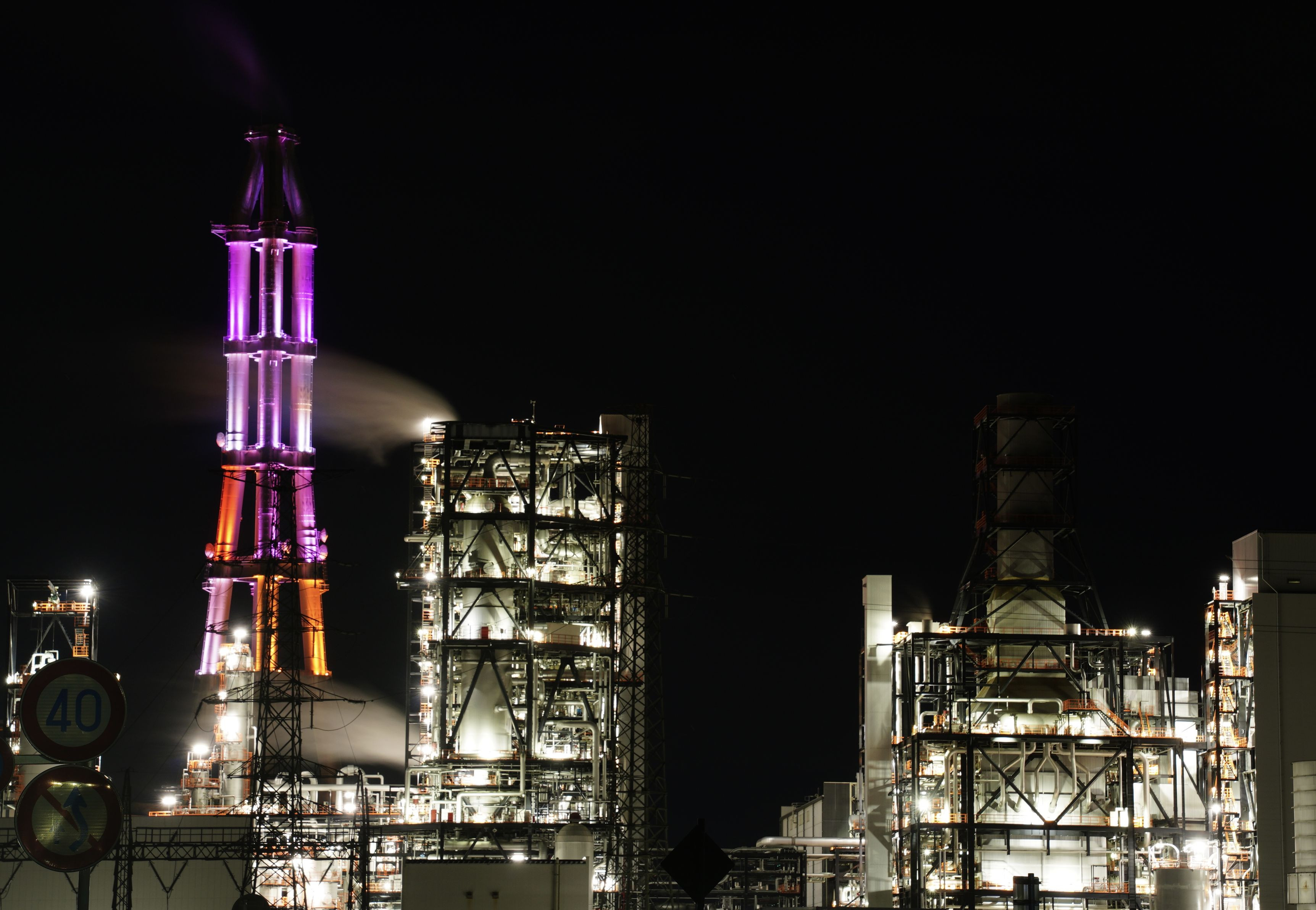 福島県いわき市の工場夜景、勿来ゆめライト。テーマに応じて色を変える、幻想的な工場夜景。