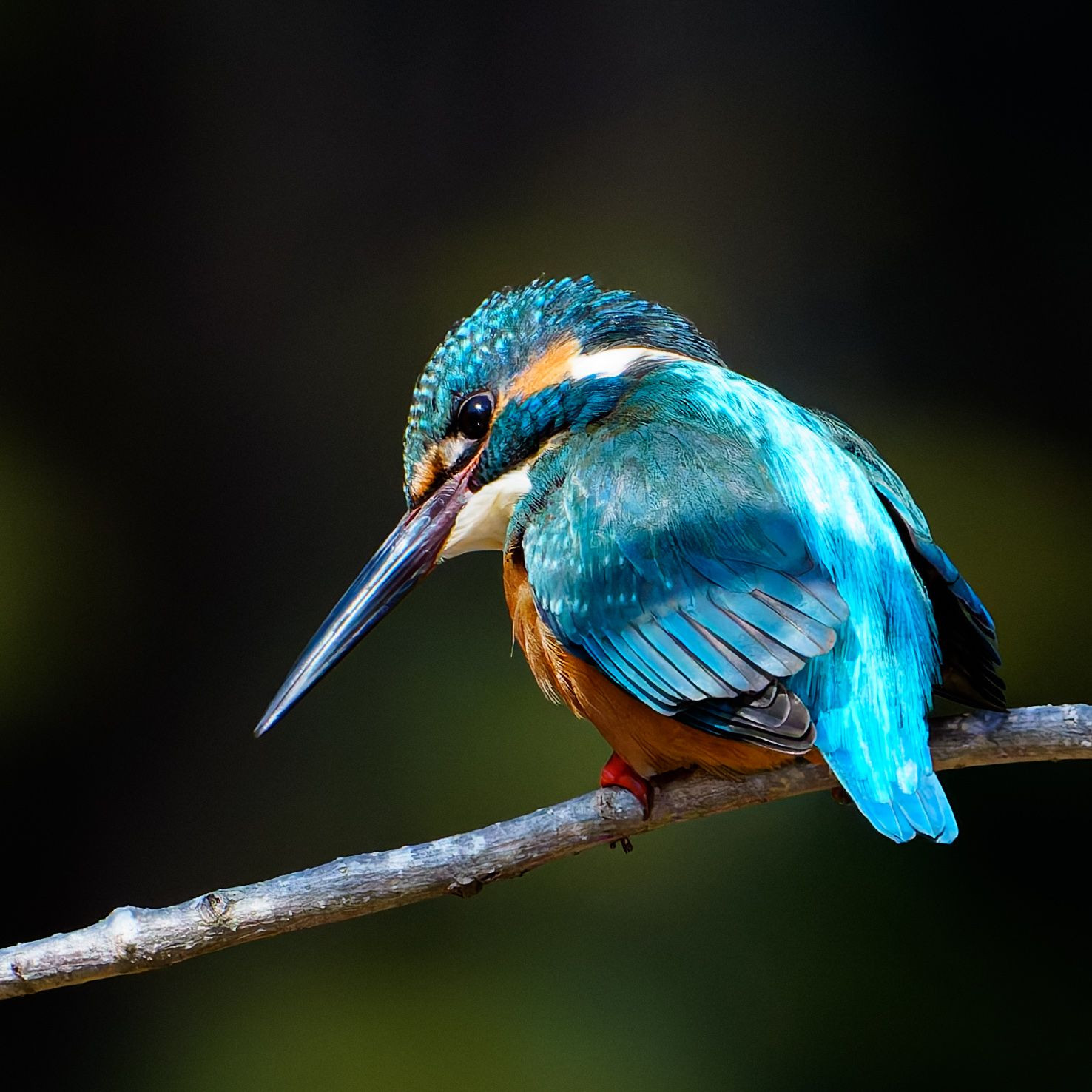 冬の公園の池で枯れ枝から獲物を狙うカワセミ この季節、小魚は少なく小エビ狙いでしょうか。