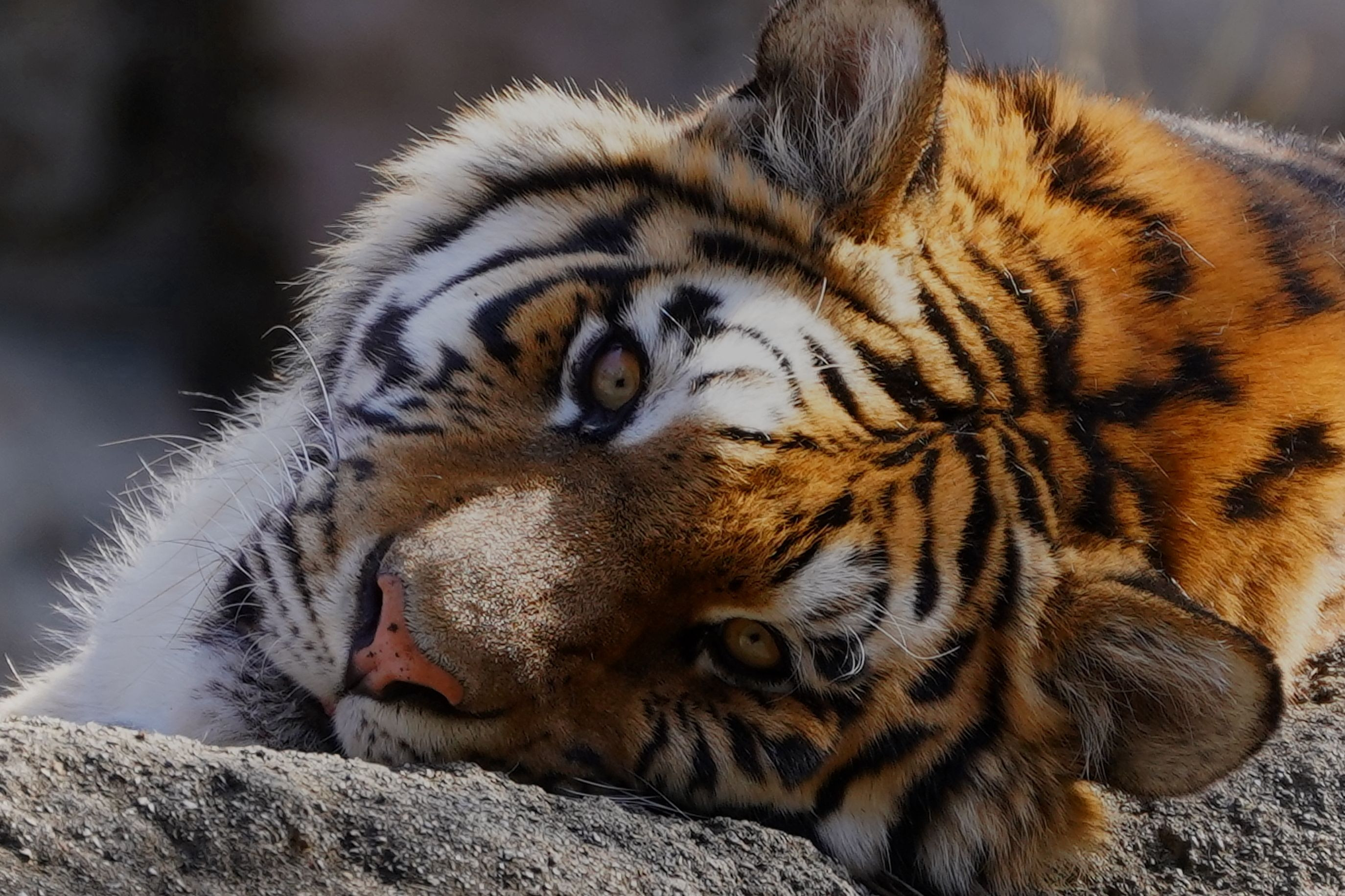 昼寝をしょうと岩の上で横になっていたのですがカメラを向けていると気になるようでずっとこちらを睨んでいました。