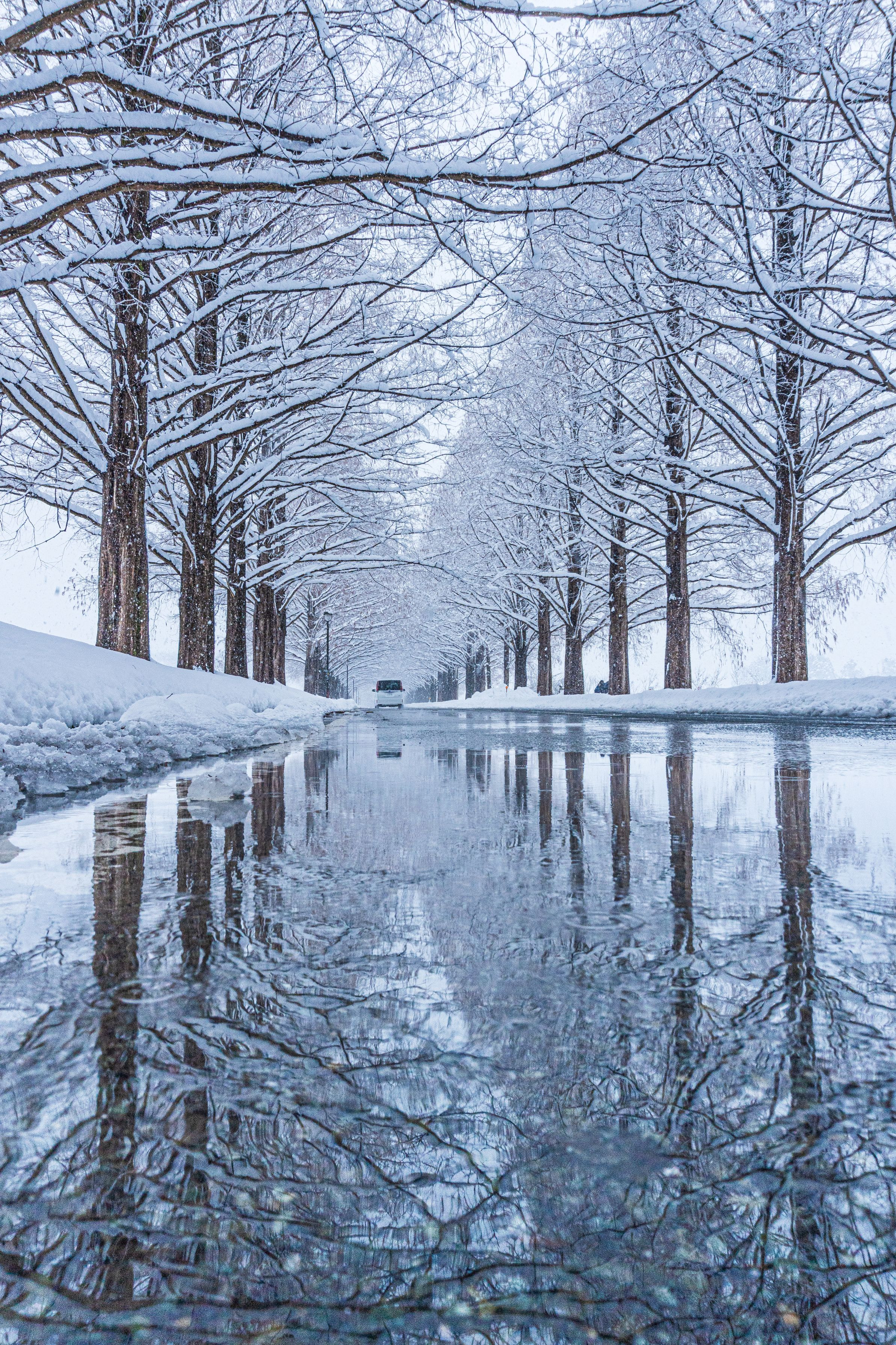 微妙な気象条件ではありましたが、なんとかリフレクションしているところが見つかりました。 メタセコイア並木の一番好きな景色です。