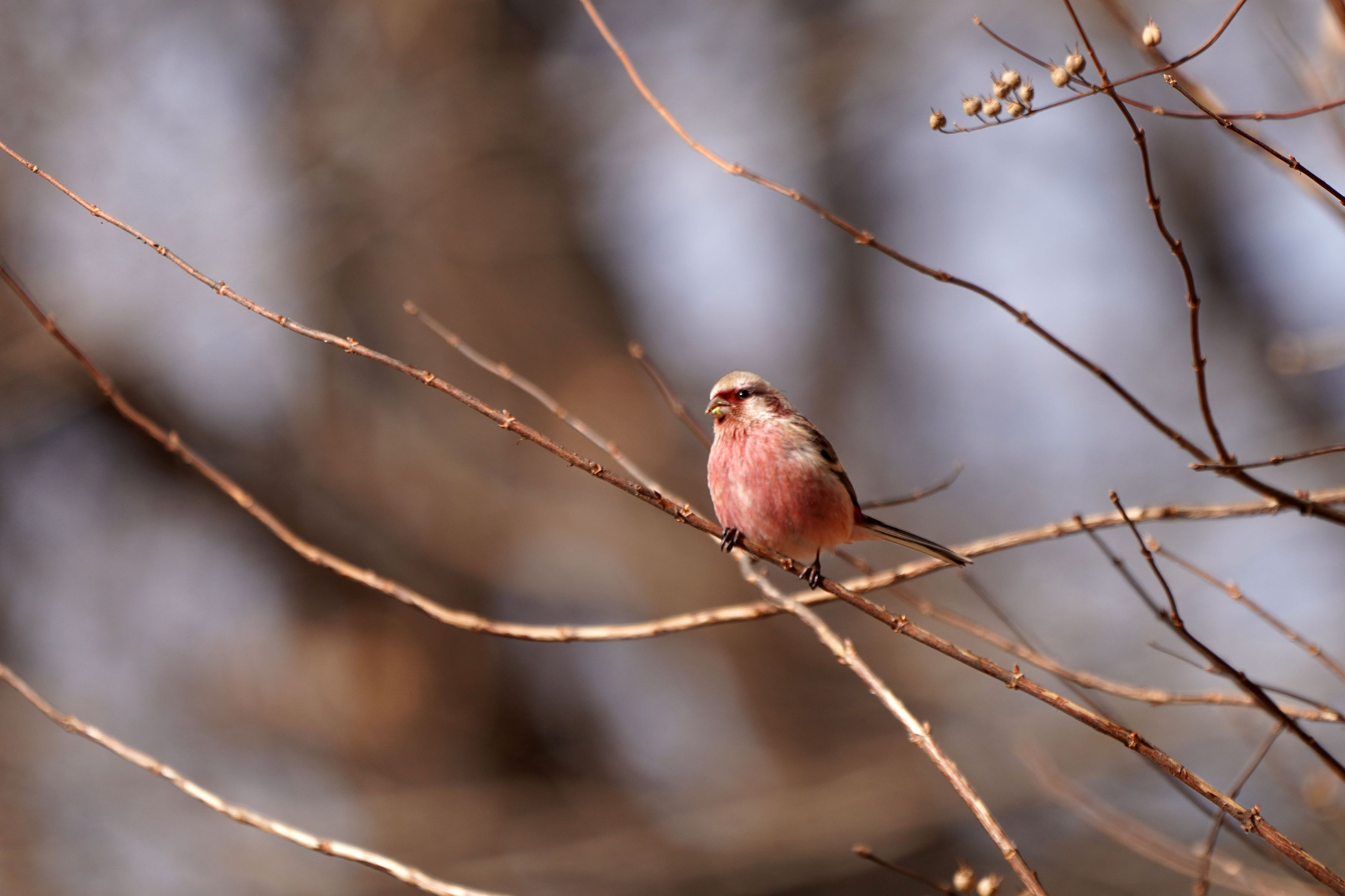 風も強いし鳥果もないかと思いながら歩いていたら、真っ赤なあの子に出会えました。会えないと思ったときのほうが会える、あるあるかもしれませんね。