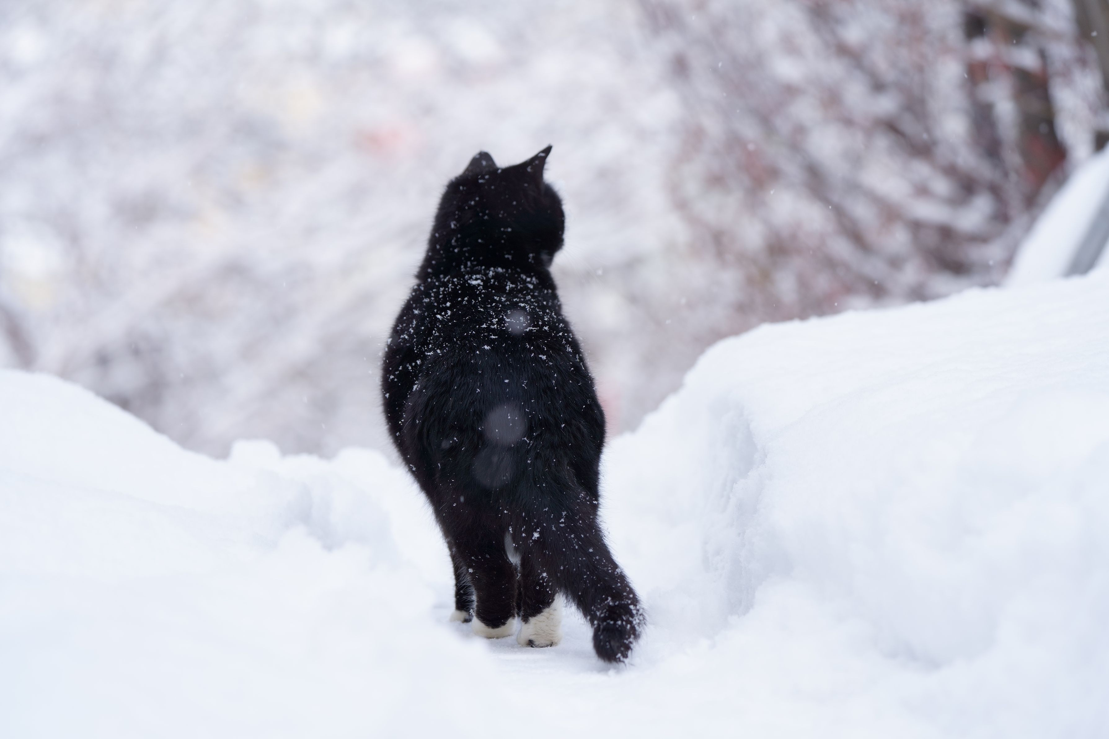 近所のさくら猫、クロちゃん。 雪が降る中でもパトロールは欠かさないそうです。 #生きもの_ペット#