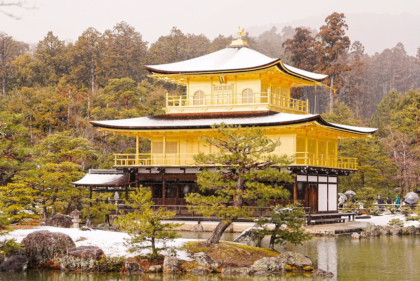 新婚旅行で京都観光したら雪が降ってきました。