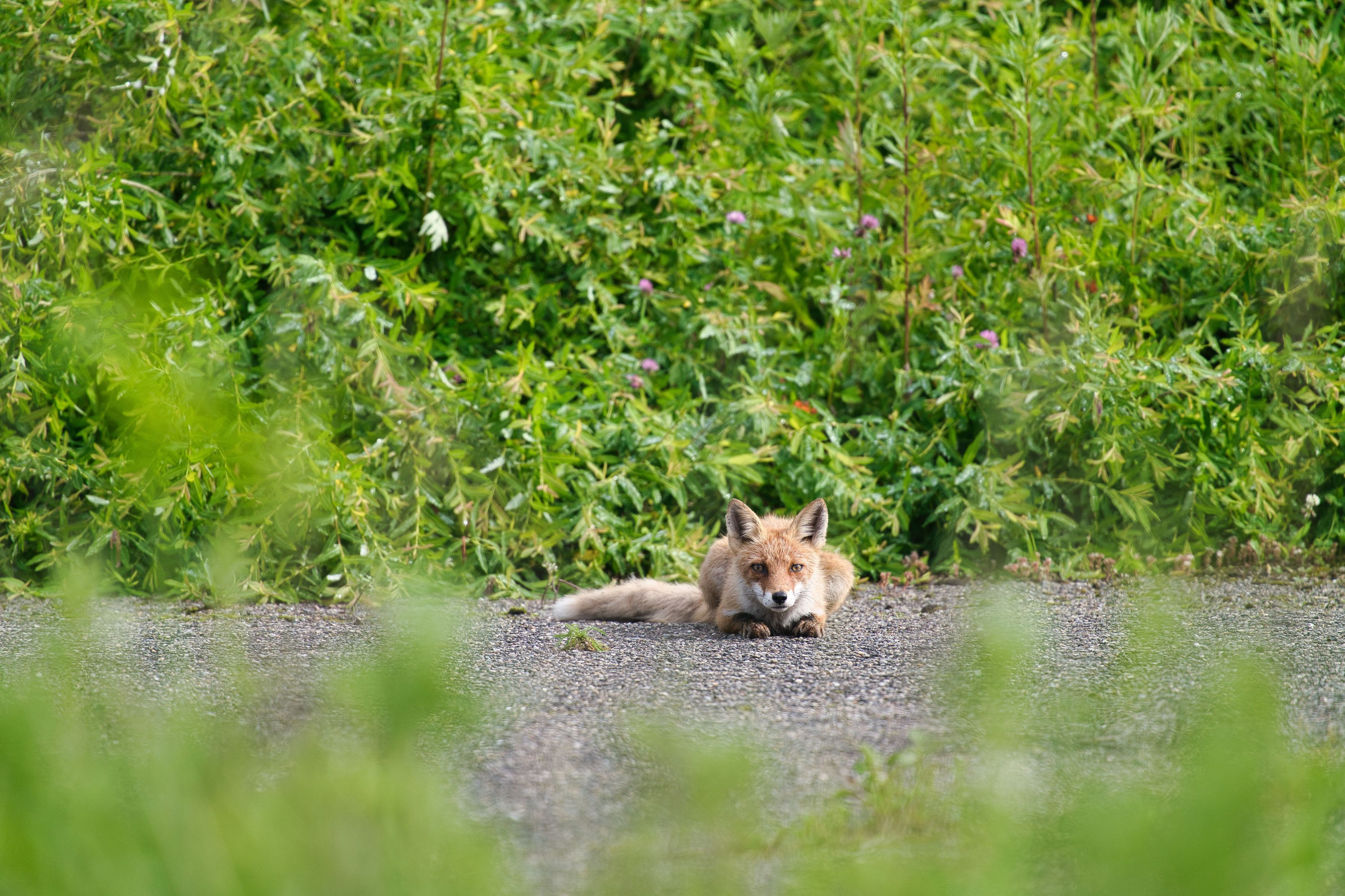 子キツネは興味津々でゴロゴロ。