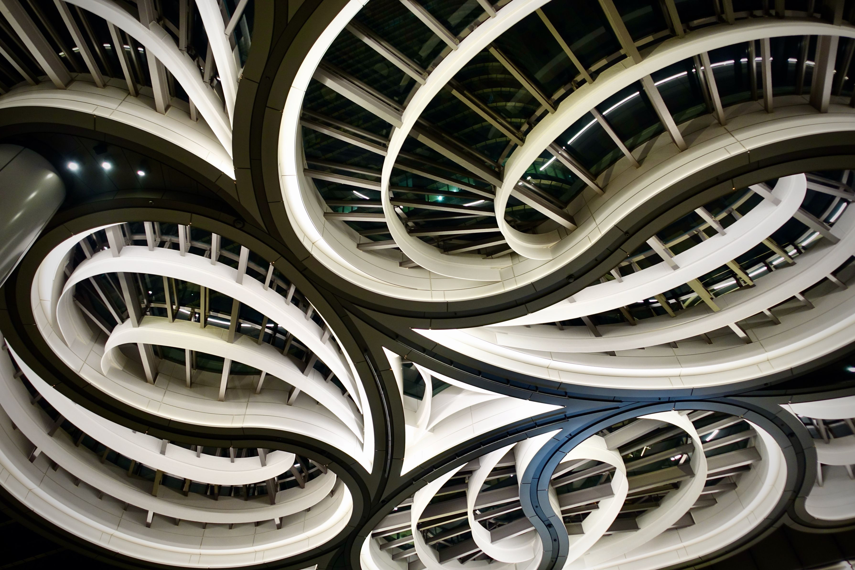 麻布台ヒルズアリーナの円形の屋根を絡ませたような大屋根