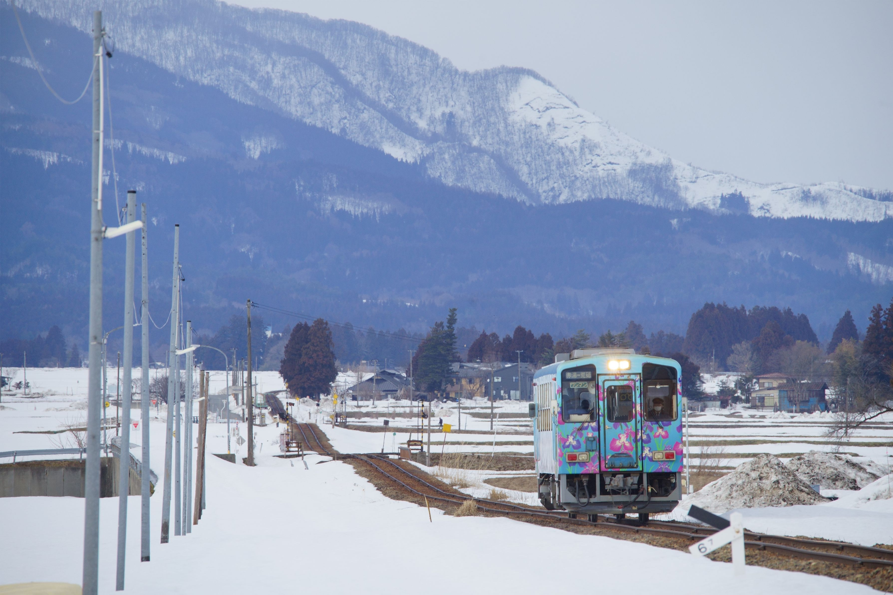 山形鉄道フラワー長井線:白兎〜羽前成田 SIGMA APO 120-400mm F4.5-5.6 DG OS HSM Commlite CM-ENF-E1 PRO 三寒四温、もう溶けるだけでしょう^^