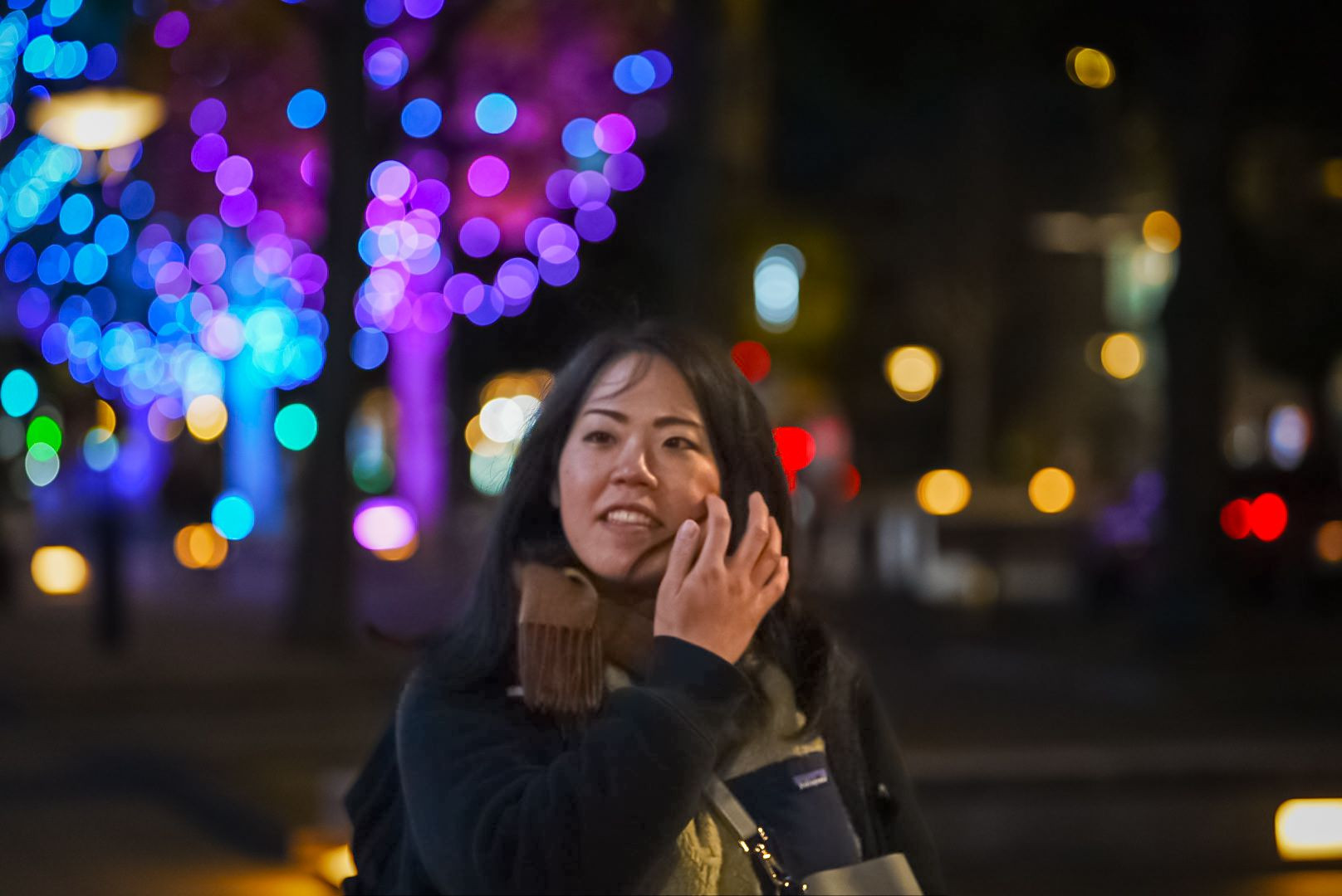 イルミネーションの前で撮影