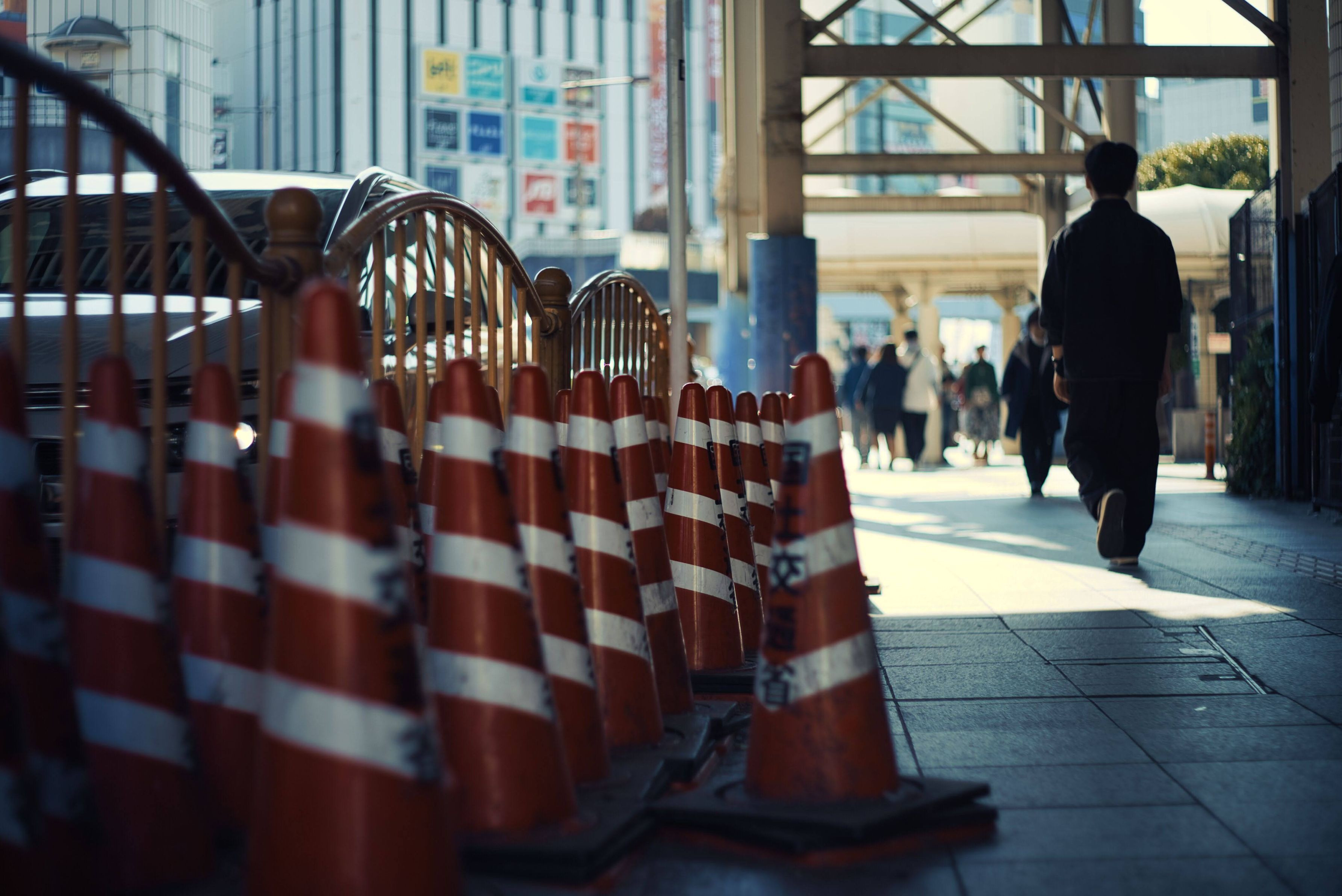 オールドレンズで上野を散策 いい感じにパイロンが沢山あったので撮ってみました。