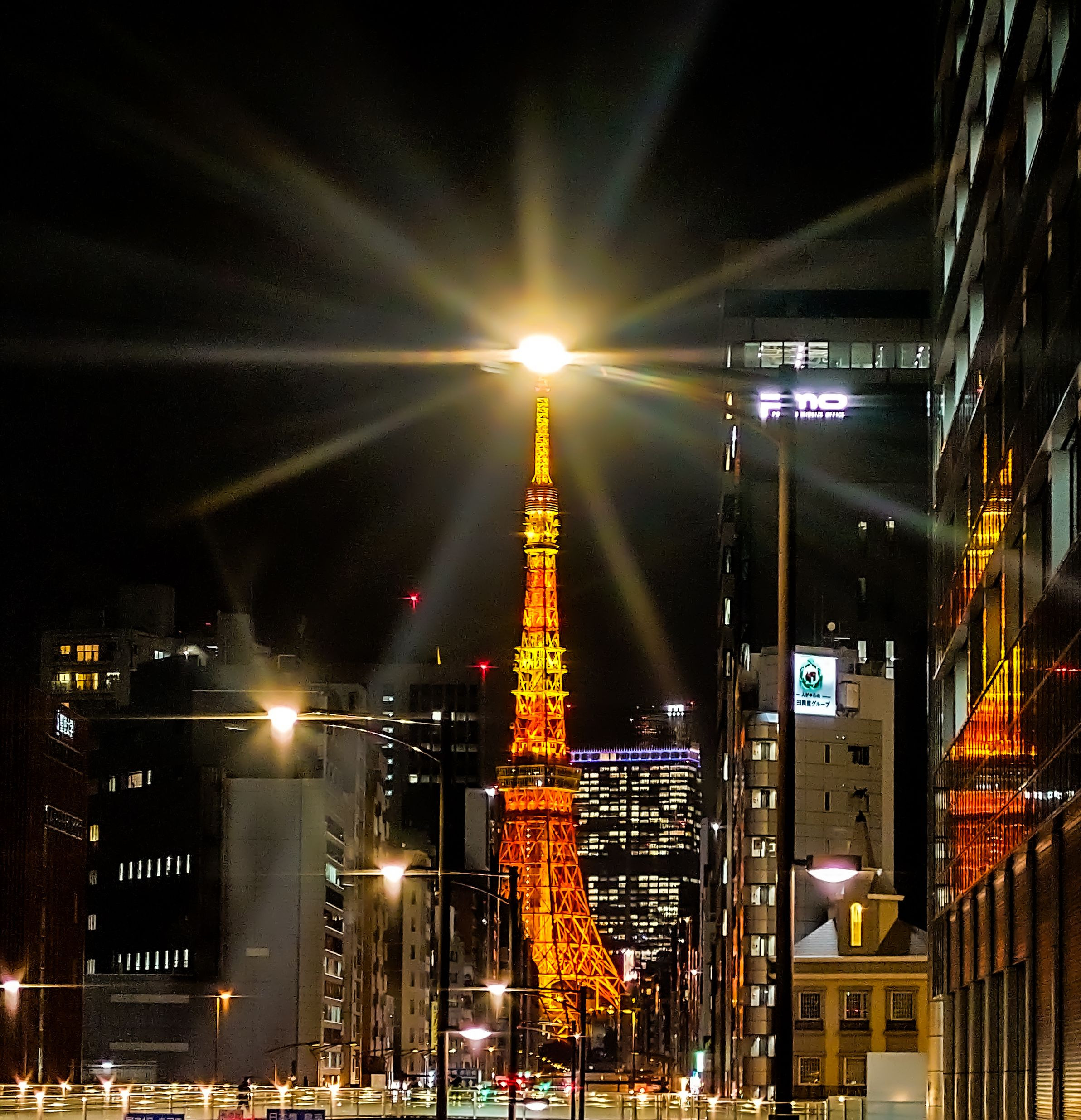 仕事帰りにスマホで撮影しました。 ビルに反射してる東京タワーを撮ろうとしたら、 街灯といい感じに(笑) アプリ版のLightroomで、レタッチしましたが、 ノイズを消しきれなかった…