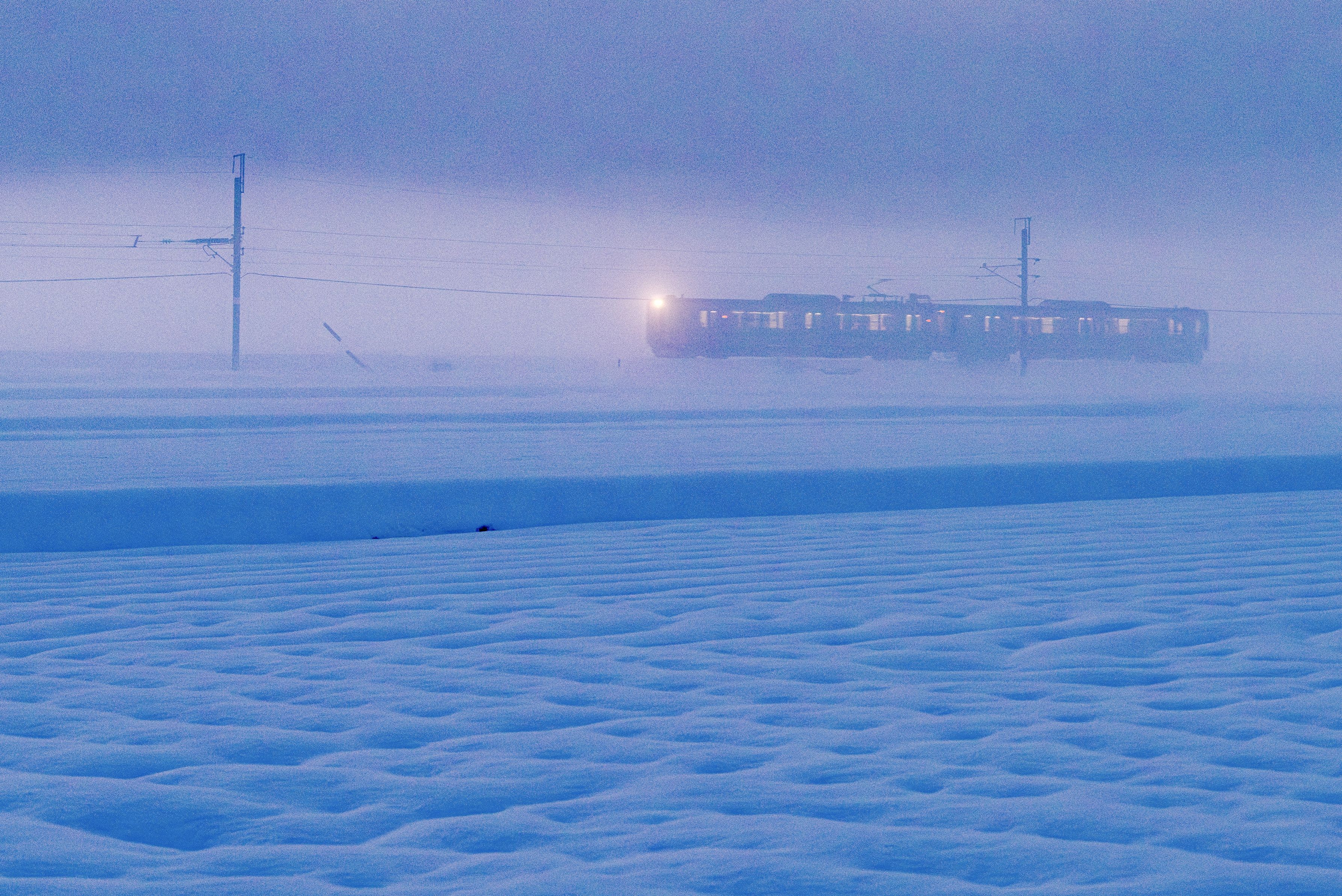 霧と雪原で幻想的でした。