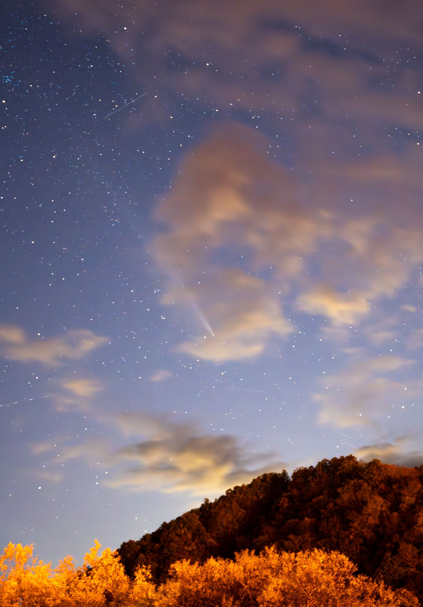 2024年の秋、夕暮れの西の空にかかった幾年ぶりかの大彗星。 奇しくも満月の時期と重なり、少ないチャンスを狙いました。