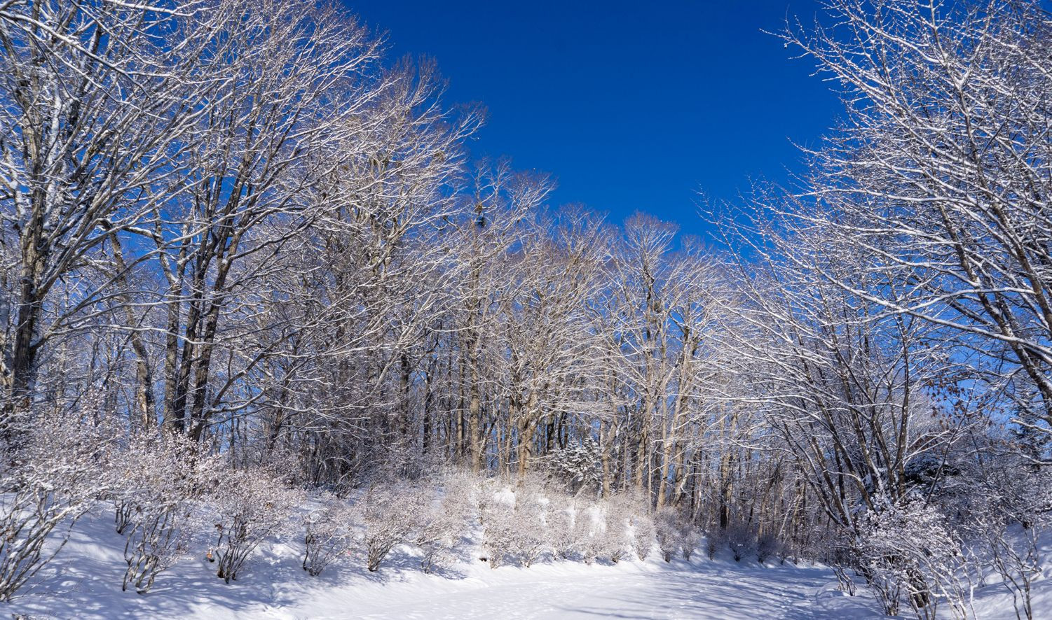 雪が降り続いた夜が明けると、鮮やかな青空のもと雪の花が咲いたように見えます。 厳しい季節ですが、最も美しい季節でもあります。