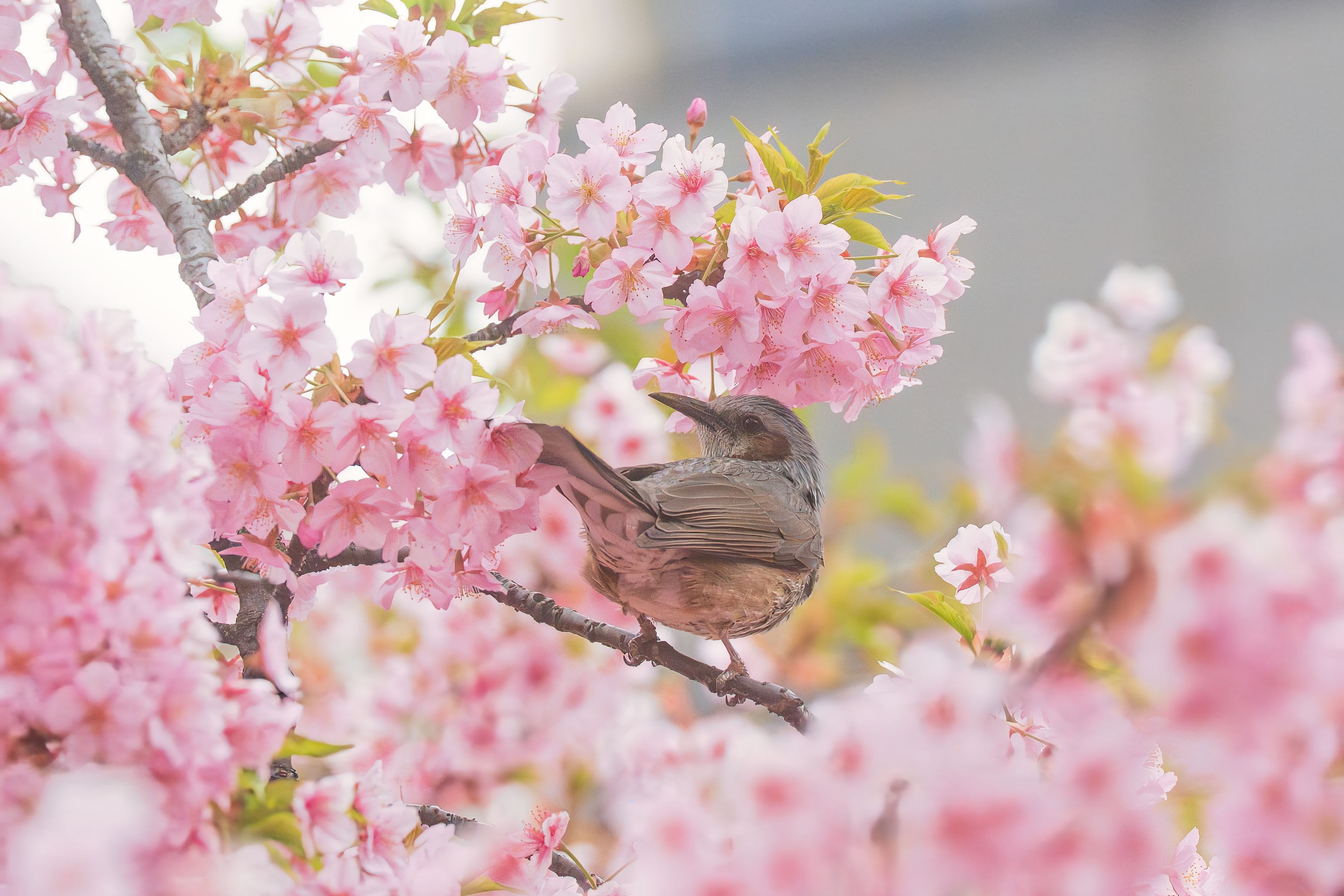 河津桜とヒヨドリさん