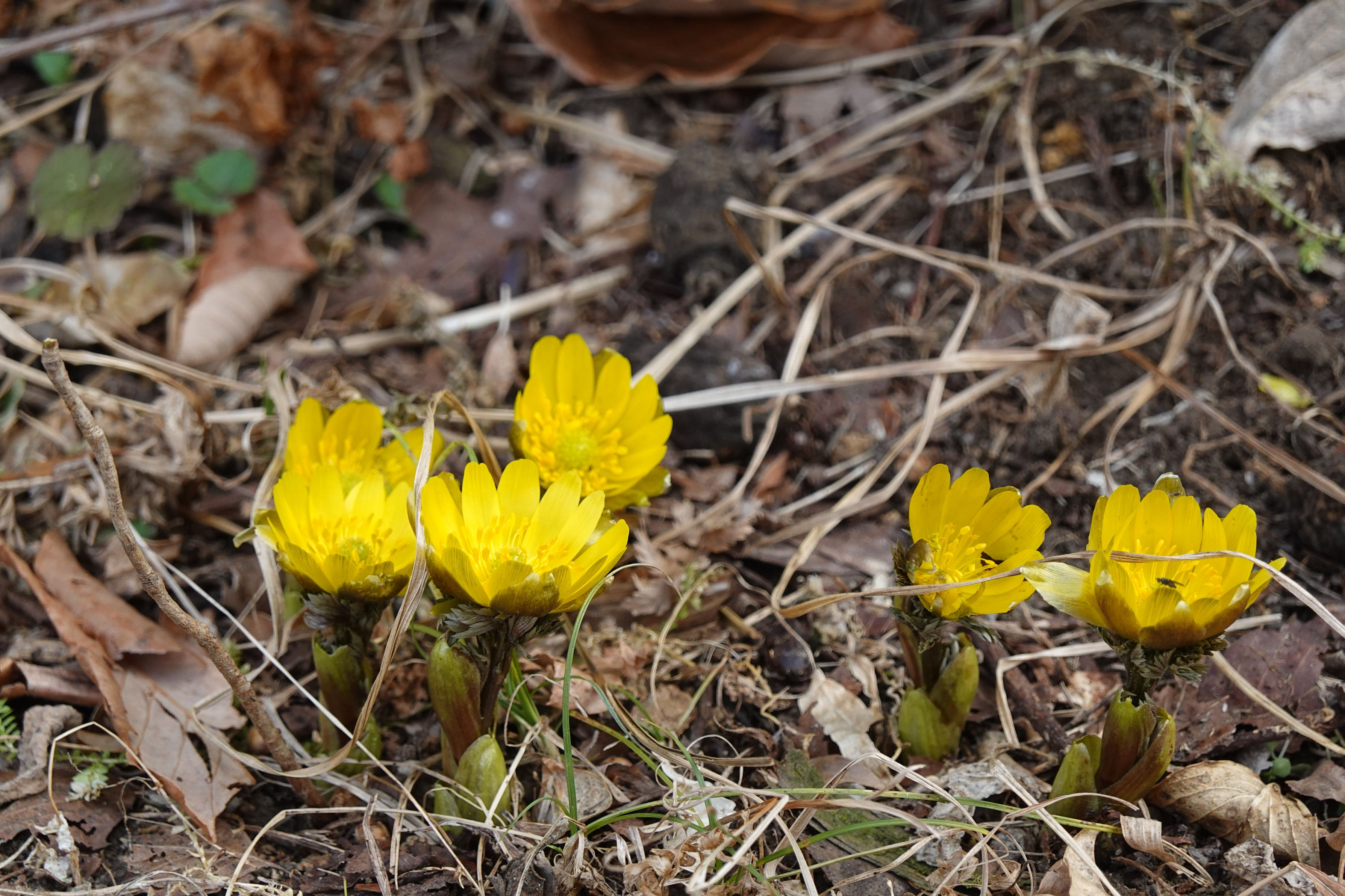 公園散策で元気な福寿草見つけました