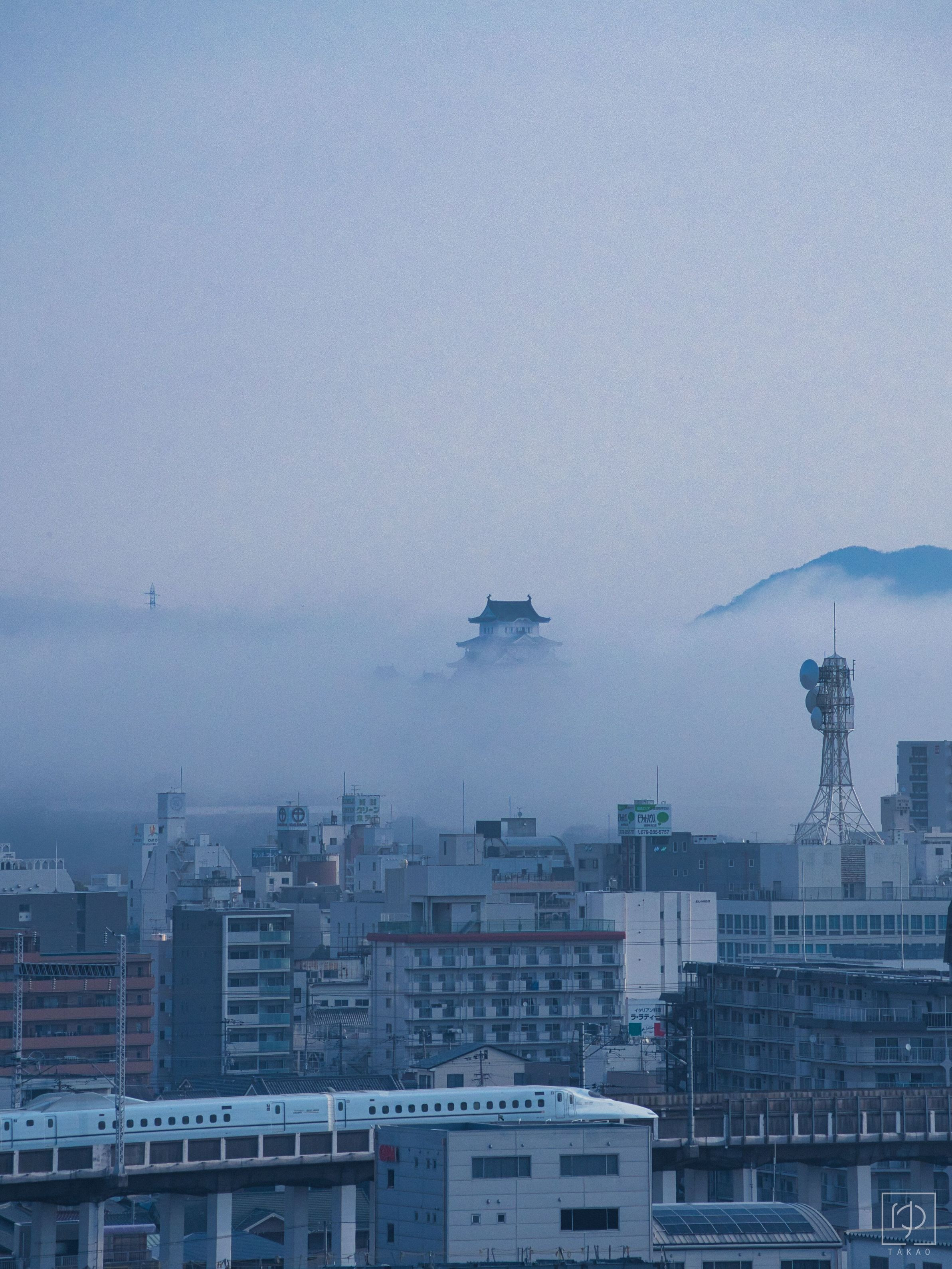 霧🌁が出る時は結構ありますが、天守閣🏯の上部が出た瞬間と新幹線🚅が奇跡的にコラボしました‼️